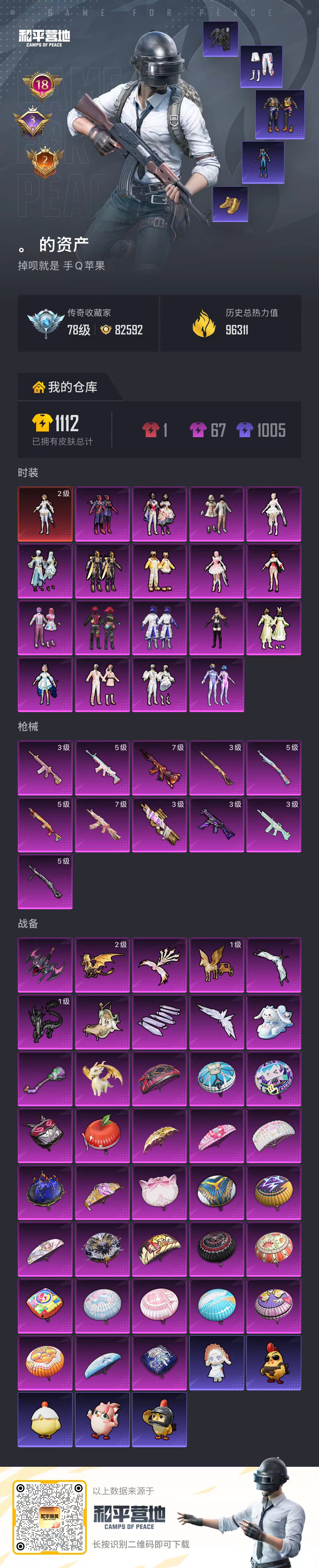 hs67318 苹果手Q-18王牌印记-1红装-18粉装-11特效枪-96311热力值-200套装-290枪皮-3卓越印记-2传奇印记
