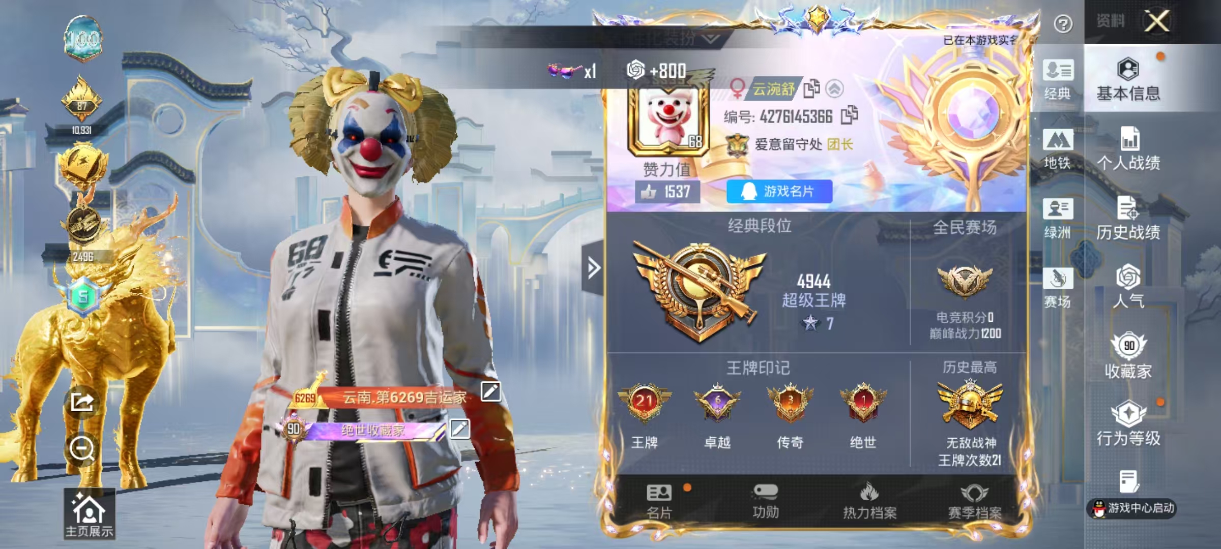 21王牌印记-有战神框-1红装-18粉装-23特效枪-5载具-热力值-262套装-395枪皮-6卓越印记-3传奇印记