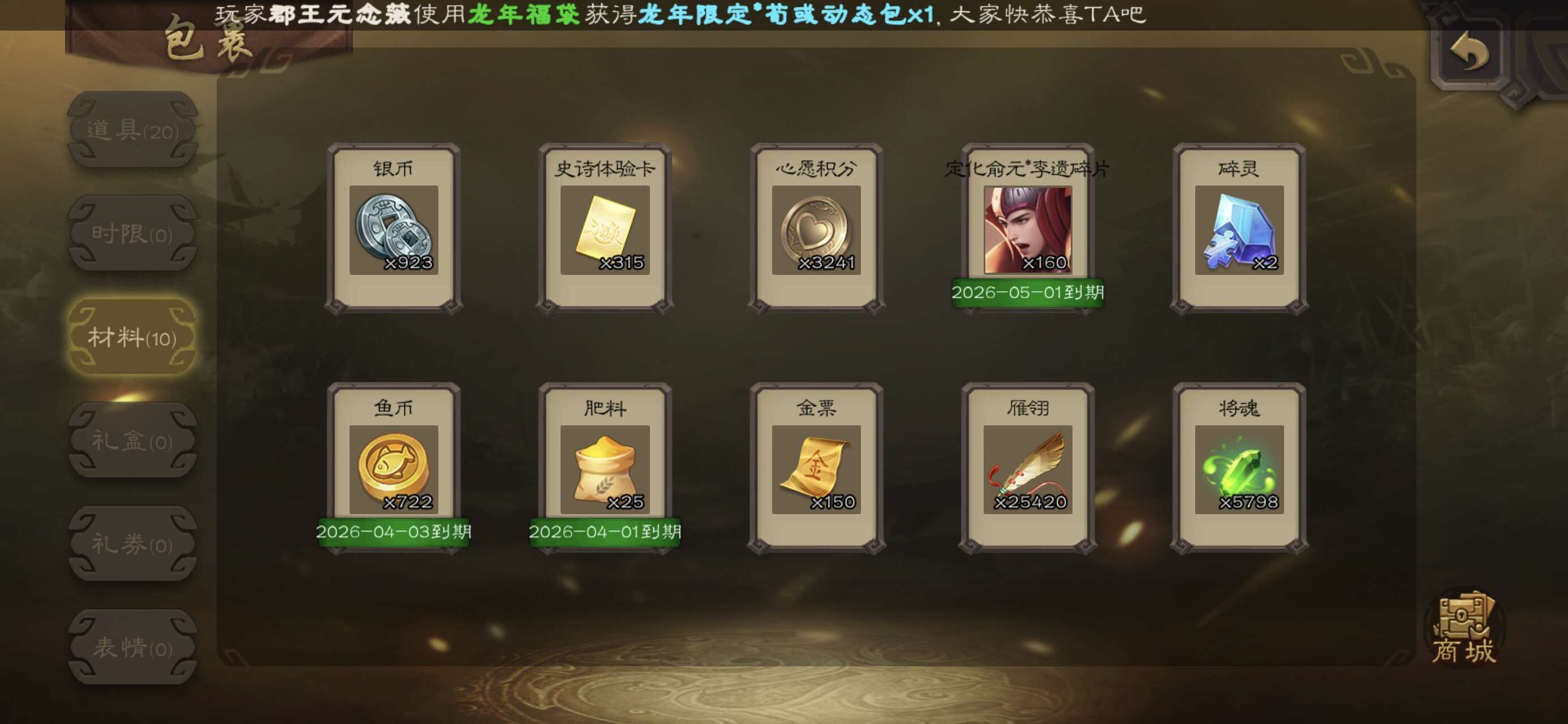动态文鸯,傅佥,界黄忠,界钟会,王璨,神赵云,其他材料看图,不讲价,不讲价。