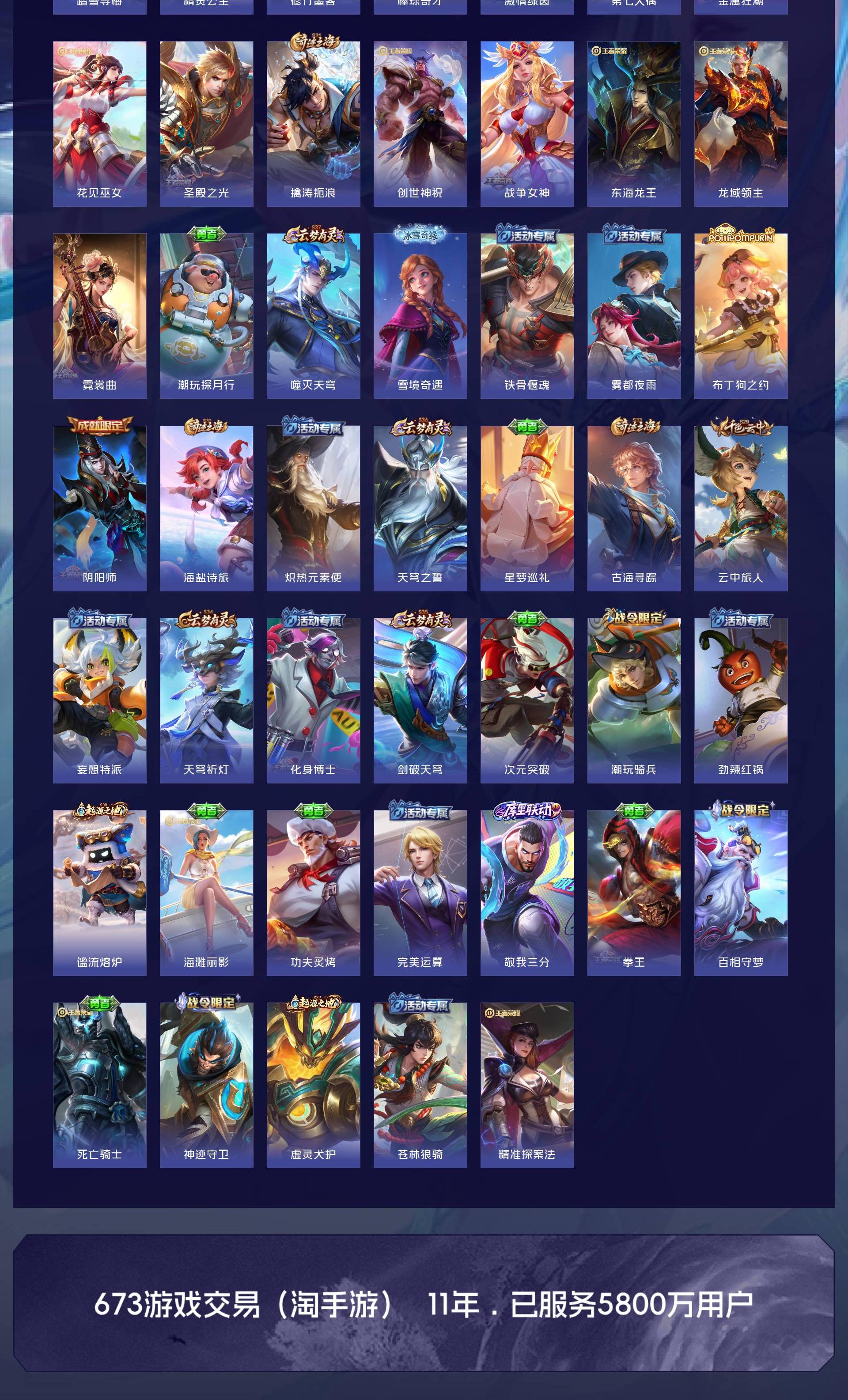 女号,无特殊符号六字id,法师射手皮肤很多,打野也有能玩的皮肤