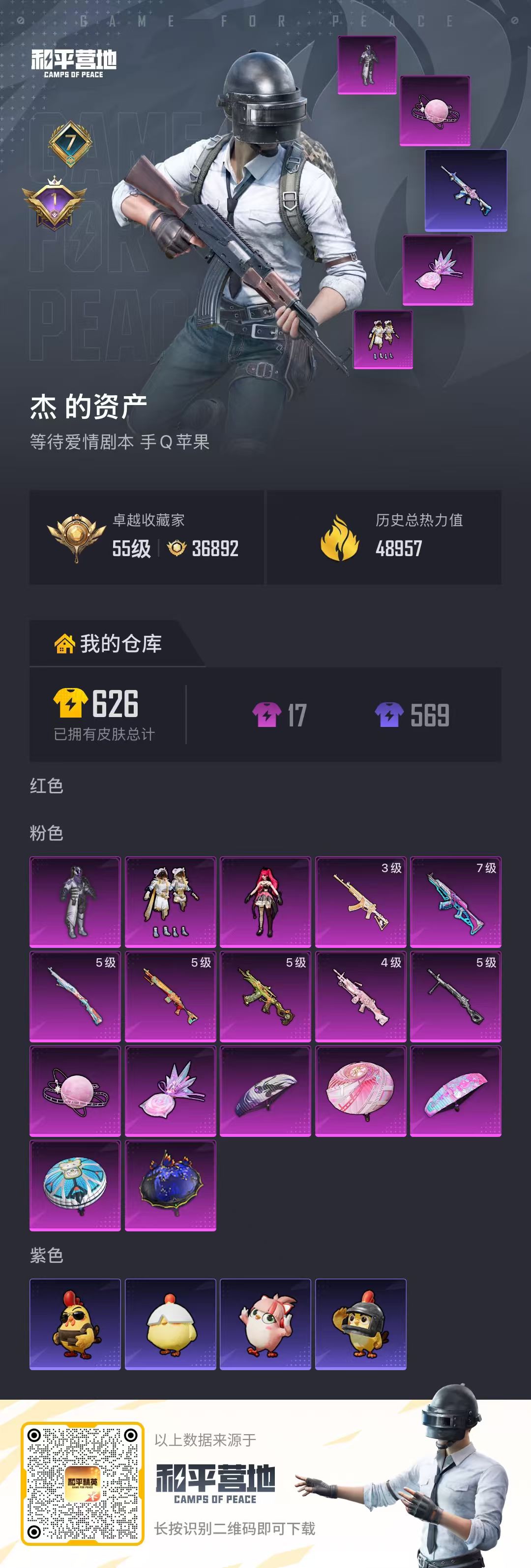 7王牌印记-3粉装-7特效枪-48957热力值-125套装-191枪皮-1卓越印记