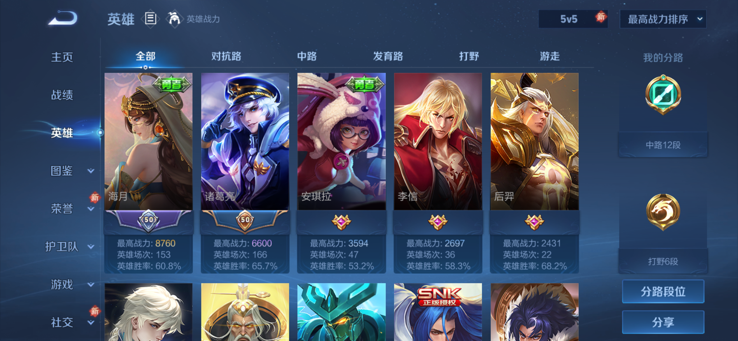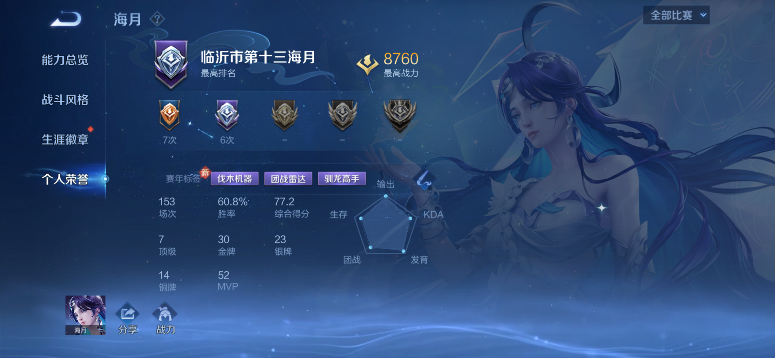 可以当新号玩 场次少 胜率高 两套法师满级铭文