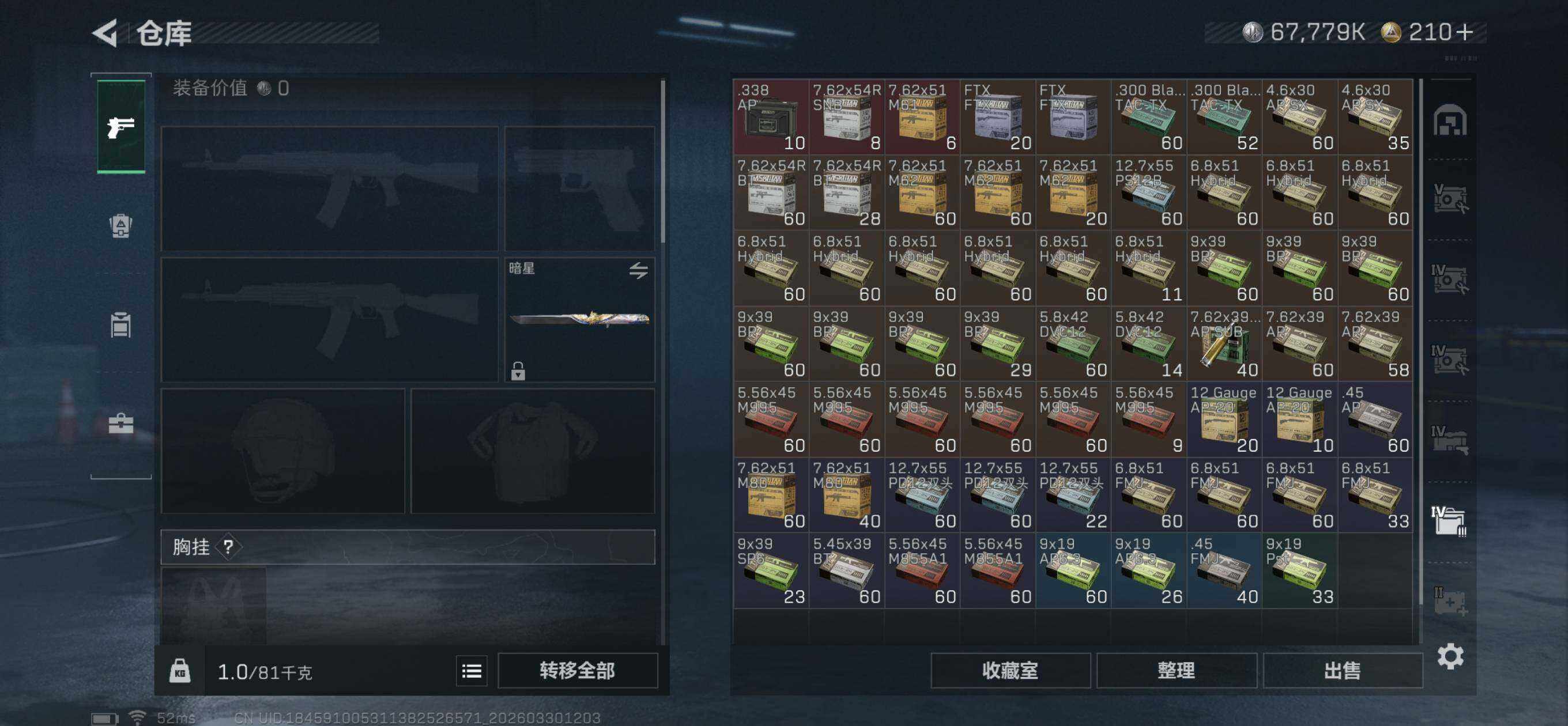 【近战-暗星/高资产】285m总资产-67779k哈夫币-60烽火等级-铂金-