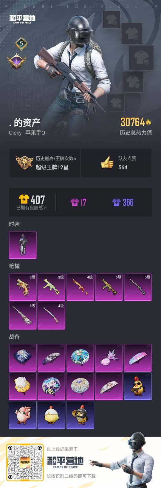 苹果 手Q-1粉装-7特效枪-0载具-1粉色飞行器-30764热力值-5王牌印记-75套装-108枪皮【热门品类】:套装-都市猎人,套装-深海小丑鱼,套装-小丑鱼【粉色套装】:粉装-幻影战神【粉色枪皮等级】:UMP45-萌骑冒险(三级),AKS-74U-森灵之息(五级),Kar98K-巳巳如意(四级),Mk14-福马献瑞(四级),AMR-智耀战神(五级),DP-28-豹影疾电(五级),信号枪-金乌曜日(三级)【粉色枪皮】:UMP45-萌骑冒险,AKS-74U-森灵之息,K