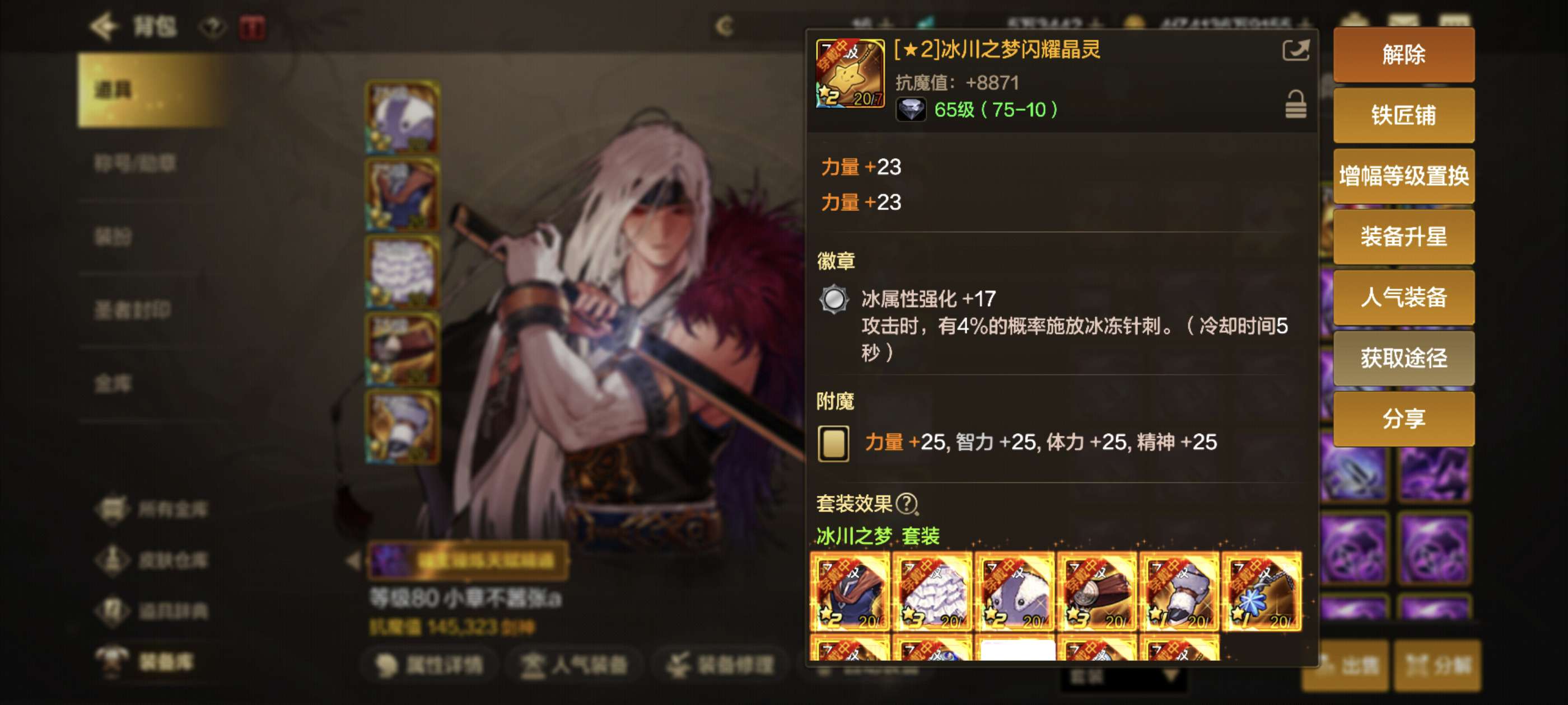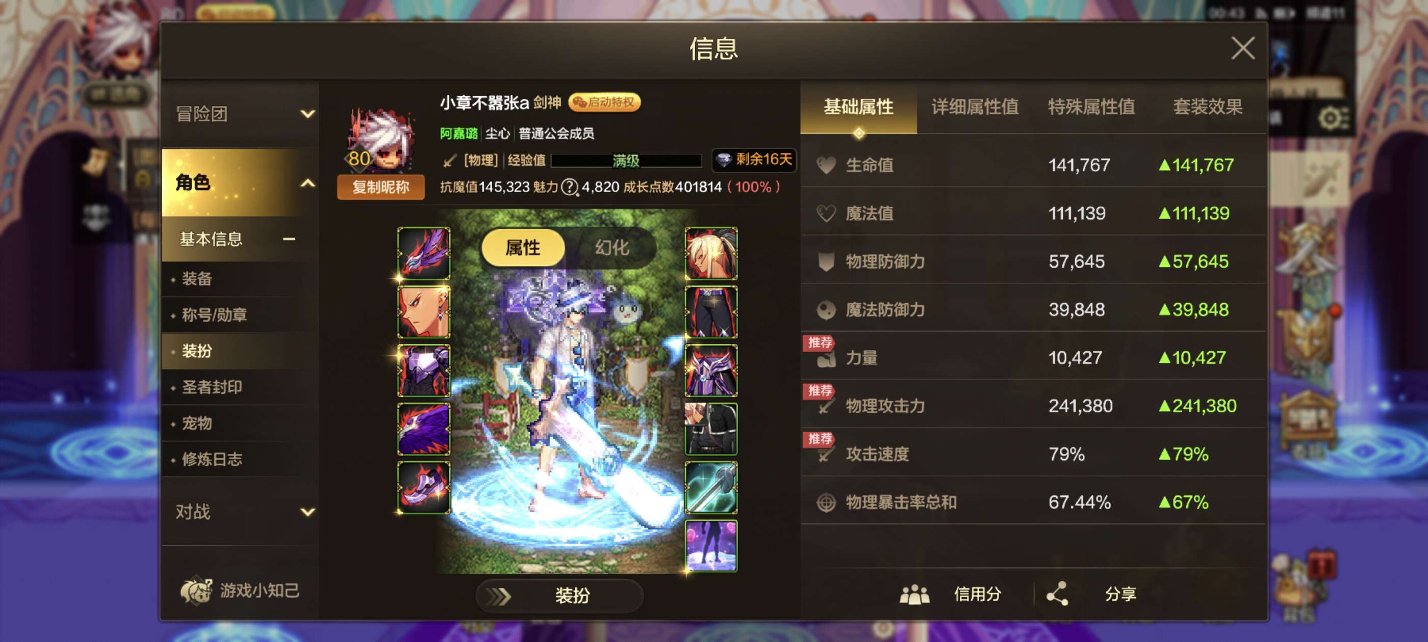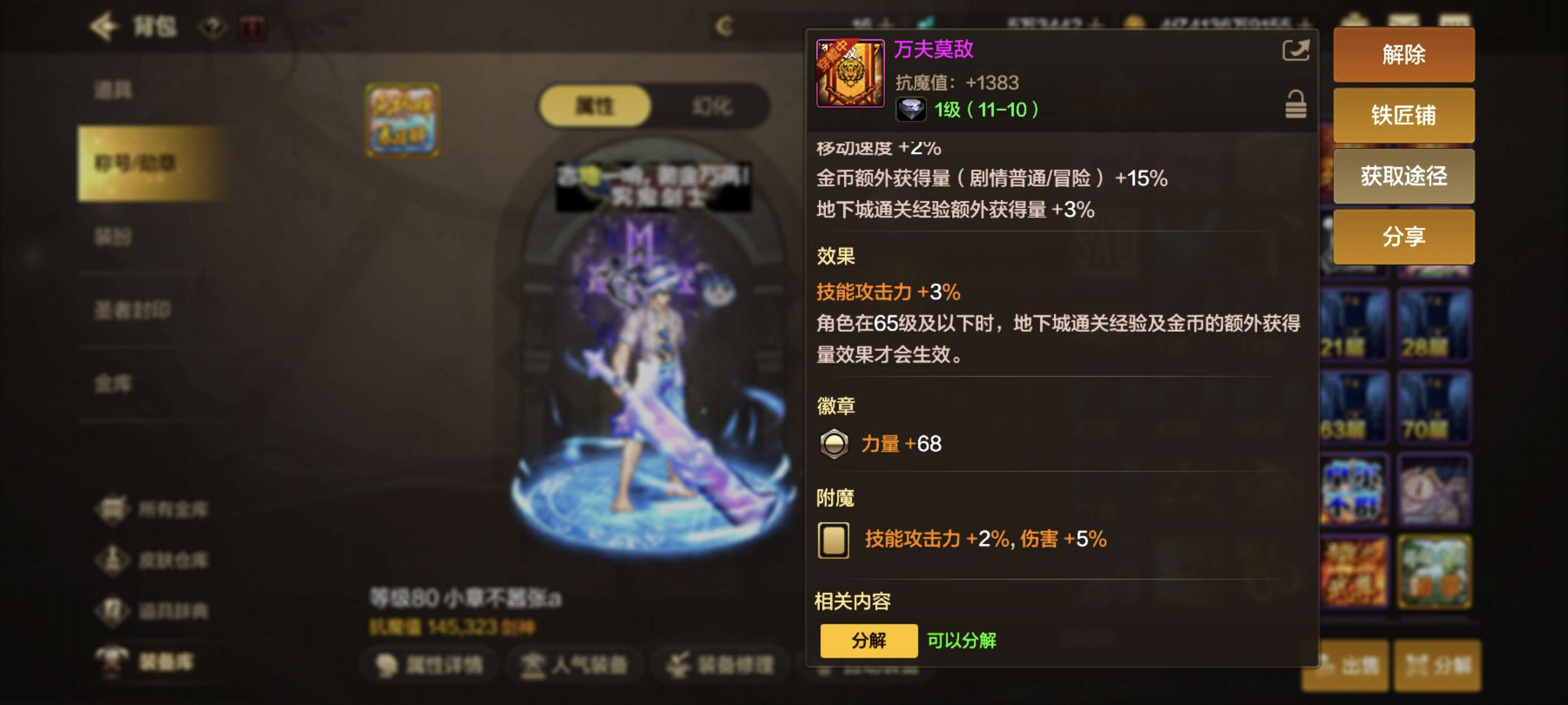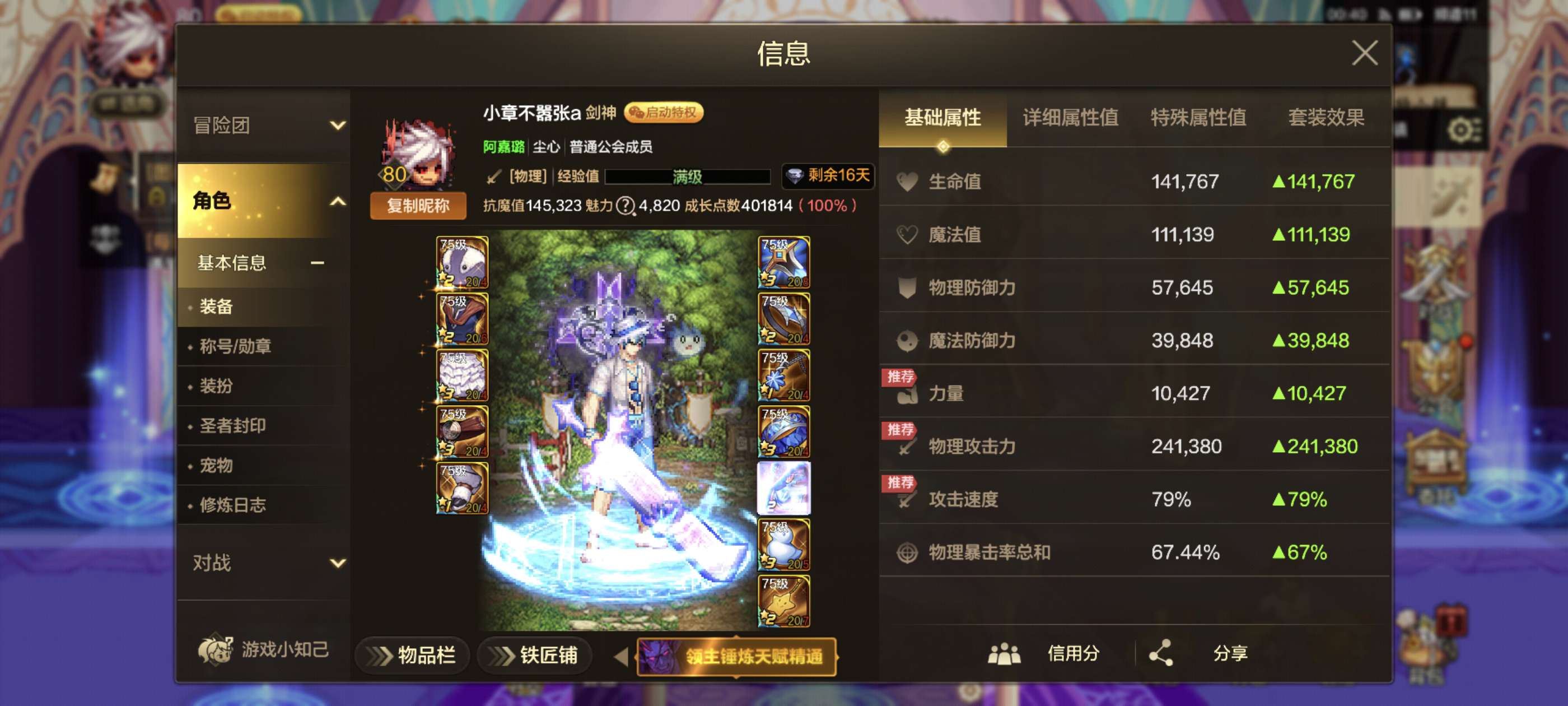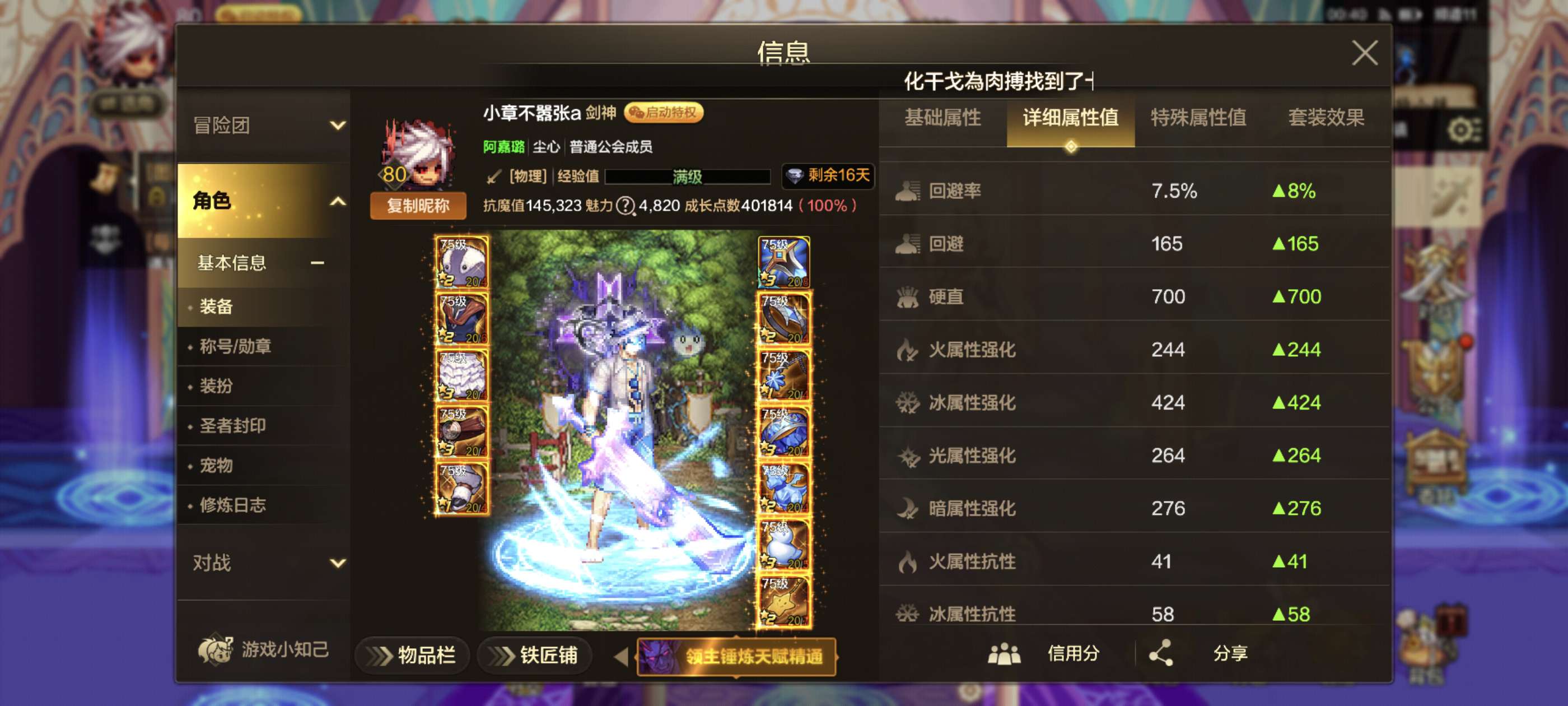 累充三万剑魂抗魔14.8万马上突破十五万, 天空四套带俩10万抗小号都有天空最低价格属强八和七。