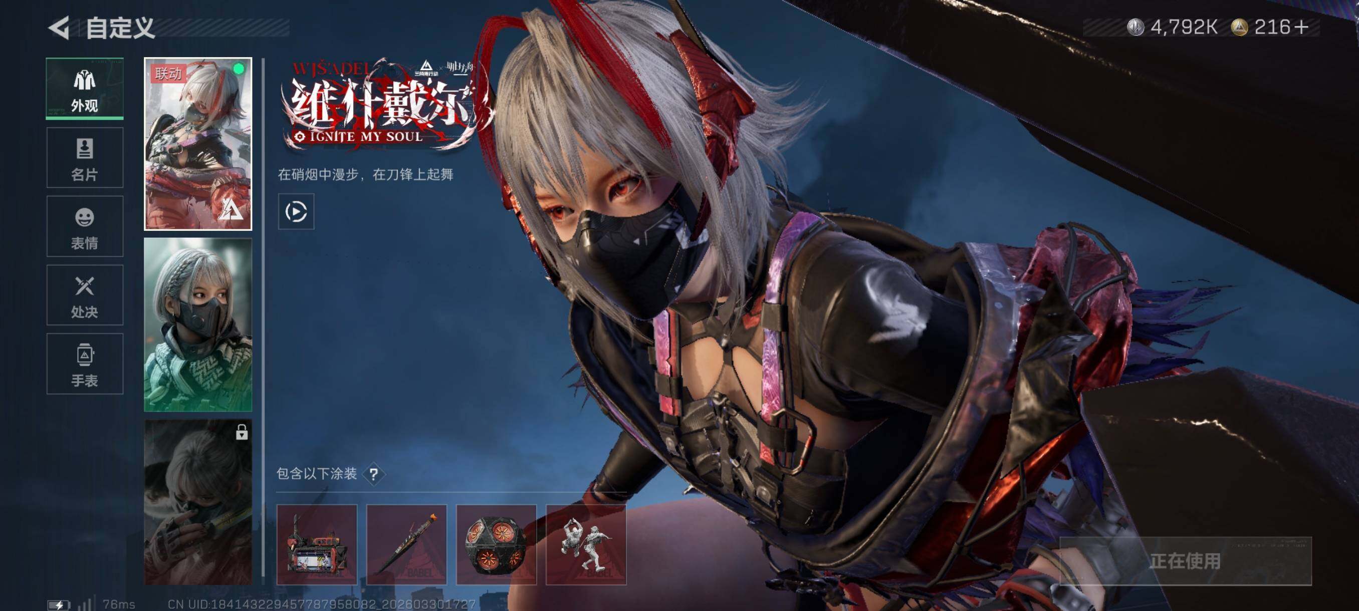 {特价出售}等级:60总资产105.7m 流动79.9m 纯币4792k 人物皮 骇爪联动 电锯惊魂 不羁人生 荒原猎手 金牌射手 刀皮 信条 特勤仓库8级 体力4级·负重3级