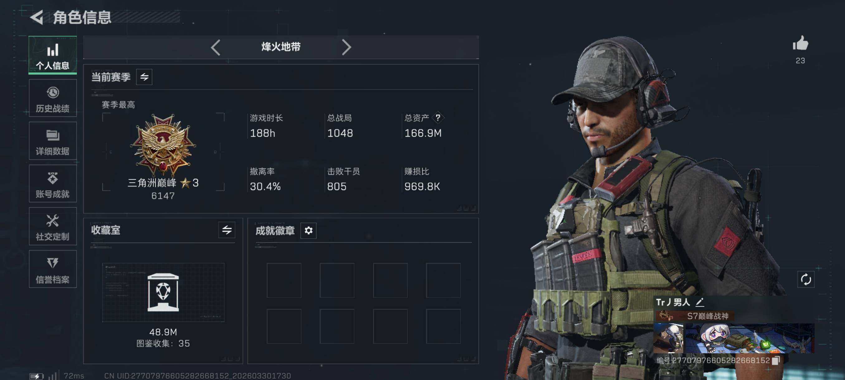 {特价出售}等级:60总资产可二次 166.9m 流动 130.2m 纯币2598k 人物皮 不羁人生 荒原猎手 金牌射手 刀皮 信条 处刑者 特勤 仓库8级 体力负重满级