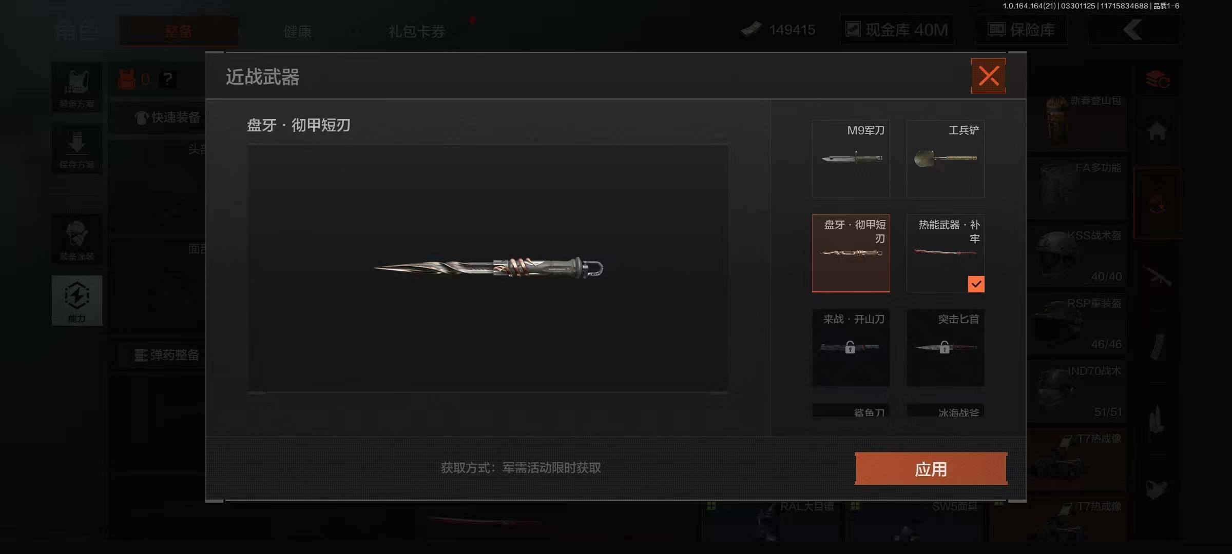 【近战武器】:热能武器补牢,盘牙彻甲短刃