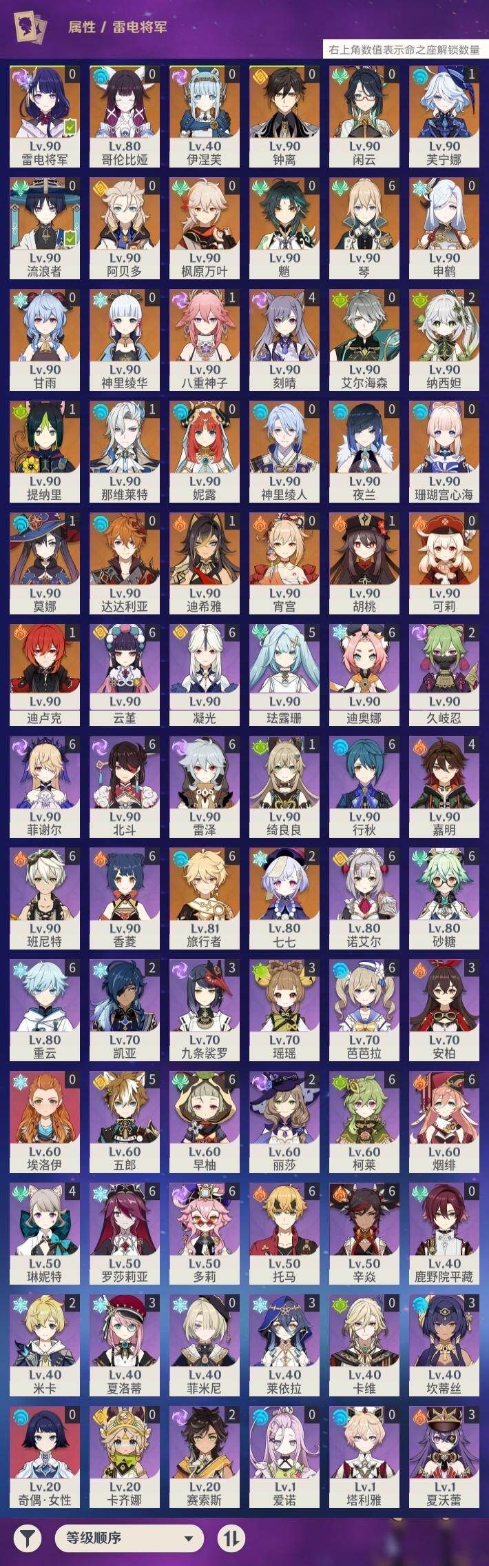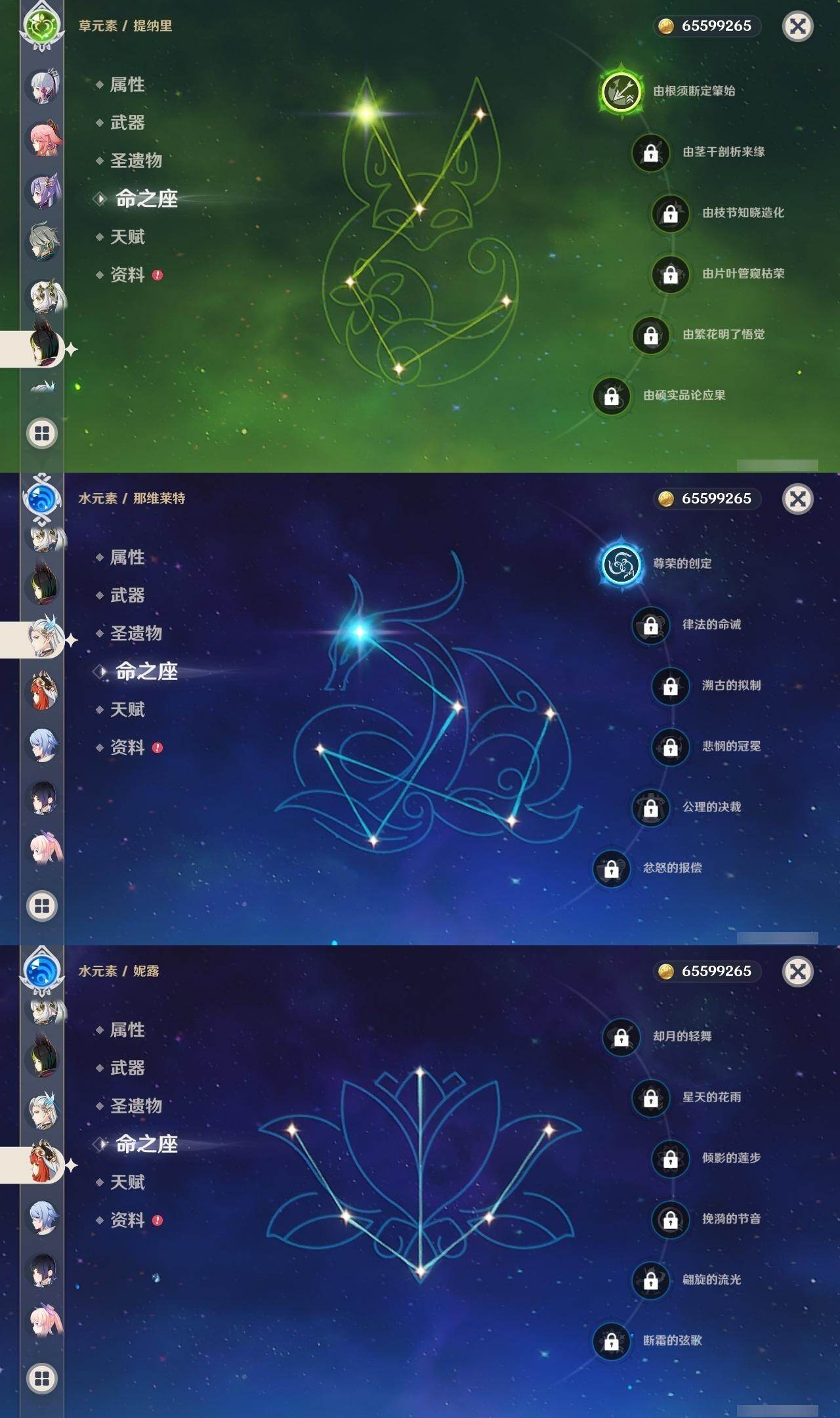 0命闲云,1命芙宁娜,1命那维莱特,1命迪希雅,0命艾尔海森,0命流浪者,2命纳西妲,0命妮露,1命提纳里,0命夜兰,0命神里绫人,1命八重神子,0命申鹤,0命雷电将军,0命枫原万叶,0命神里绫华,0命钟离,1命胡桃,0命甘雨,0命魈,0命宵宫,0命可莉,0命达达利亚,0命阿贝多,0命珊瑚宫心海,4命刻晴,2命七七,满命琴,1命莫娜,1命迪卢克,0命伊涅芙,0命哥伦比娅,精1万世流涌大典,精2苇海信标,精1裁叶萃光,精1圣显