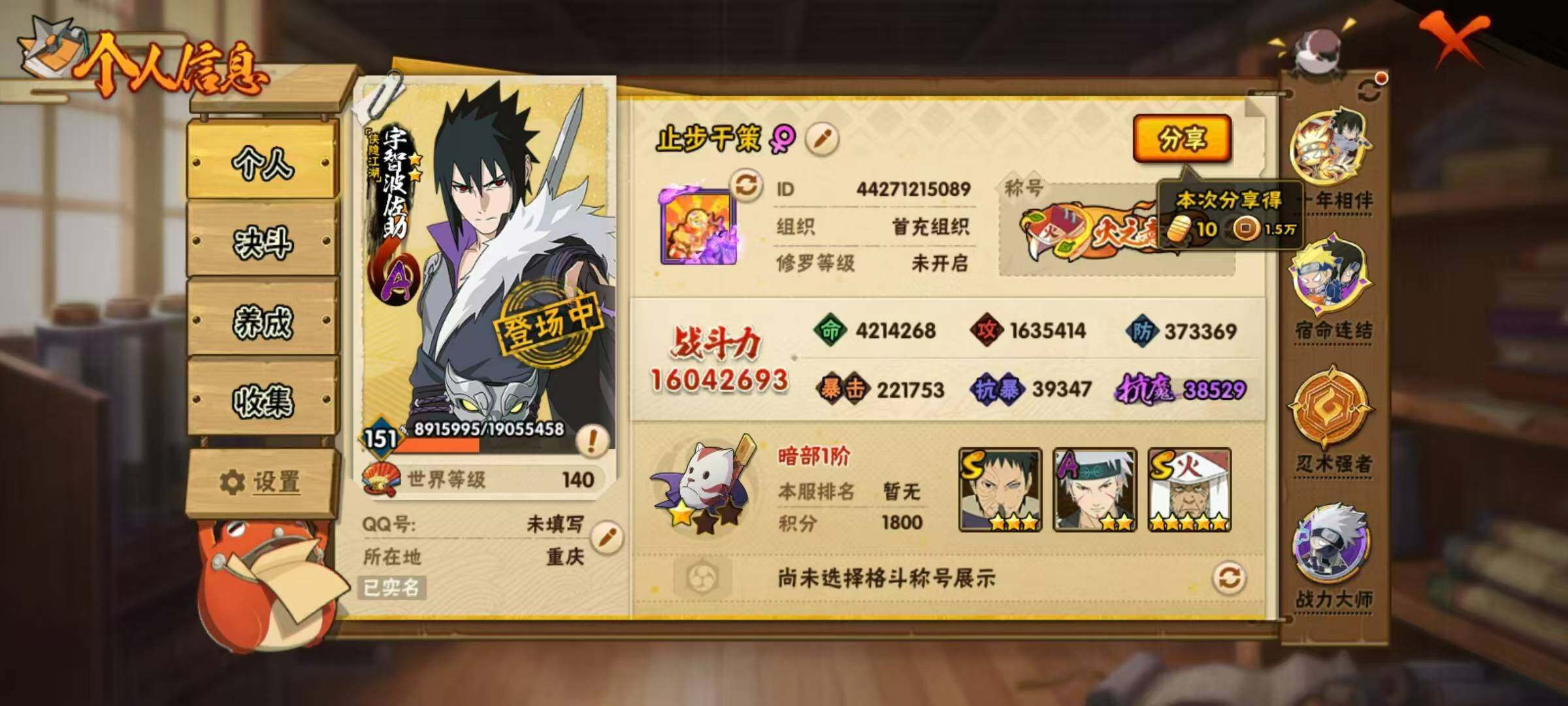 本服74名,创立柱间80片,十尾带土64片,大野木81片,金银角90片,最终章主场景