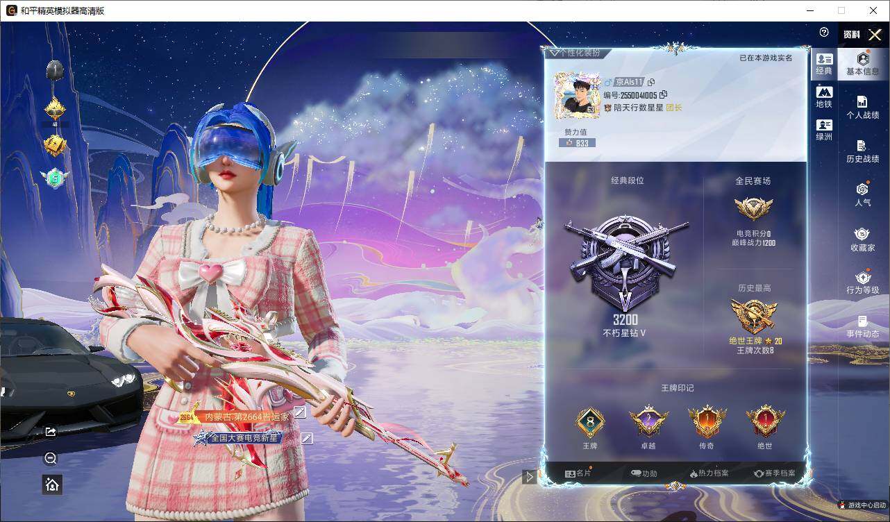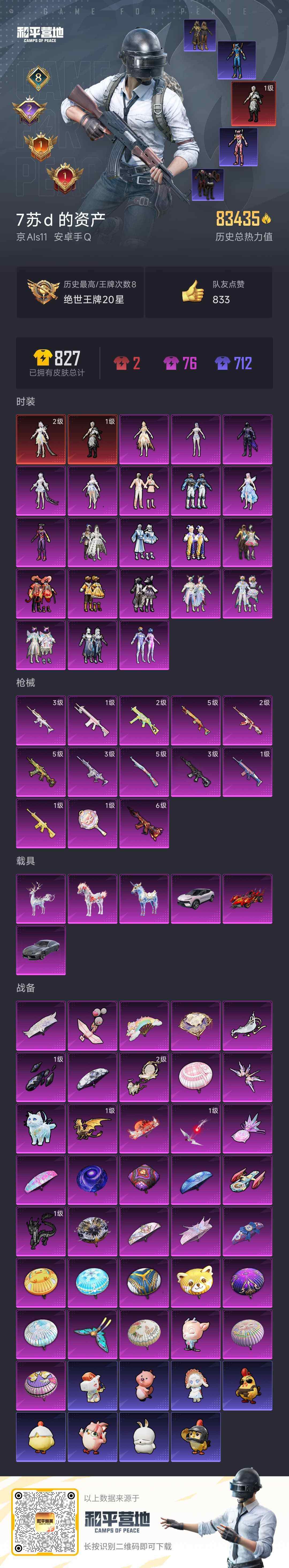 安卓 手Q-2神装-21粉装-13特效枪-6载具-13粉色飞行器-83575热力值-8王牌印记-148套装-198枪皮