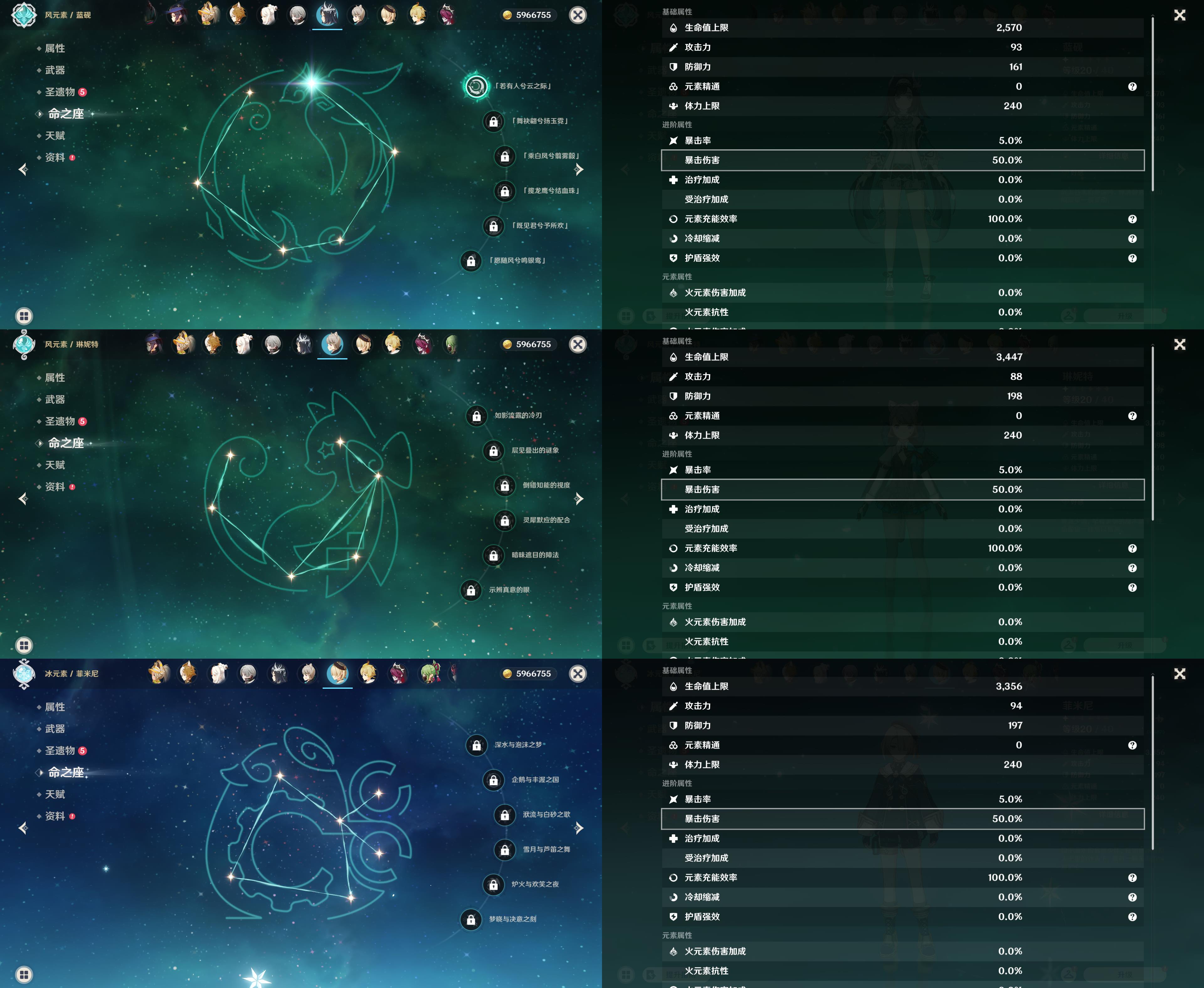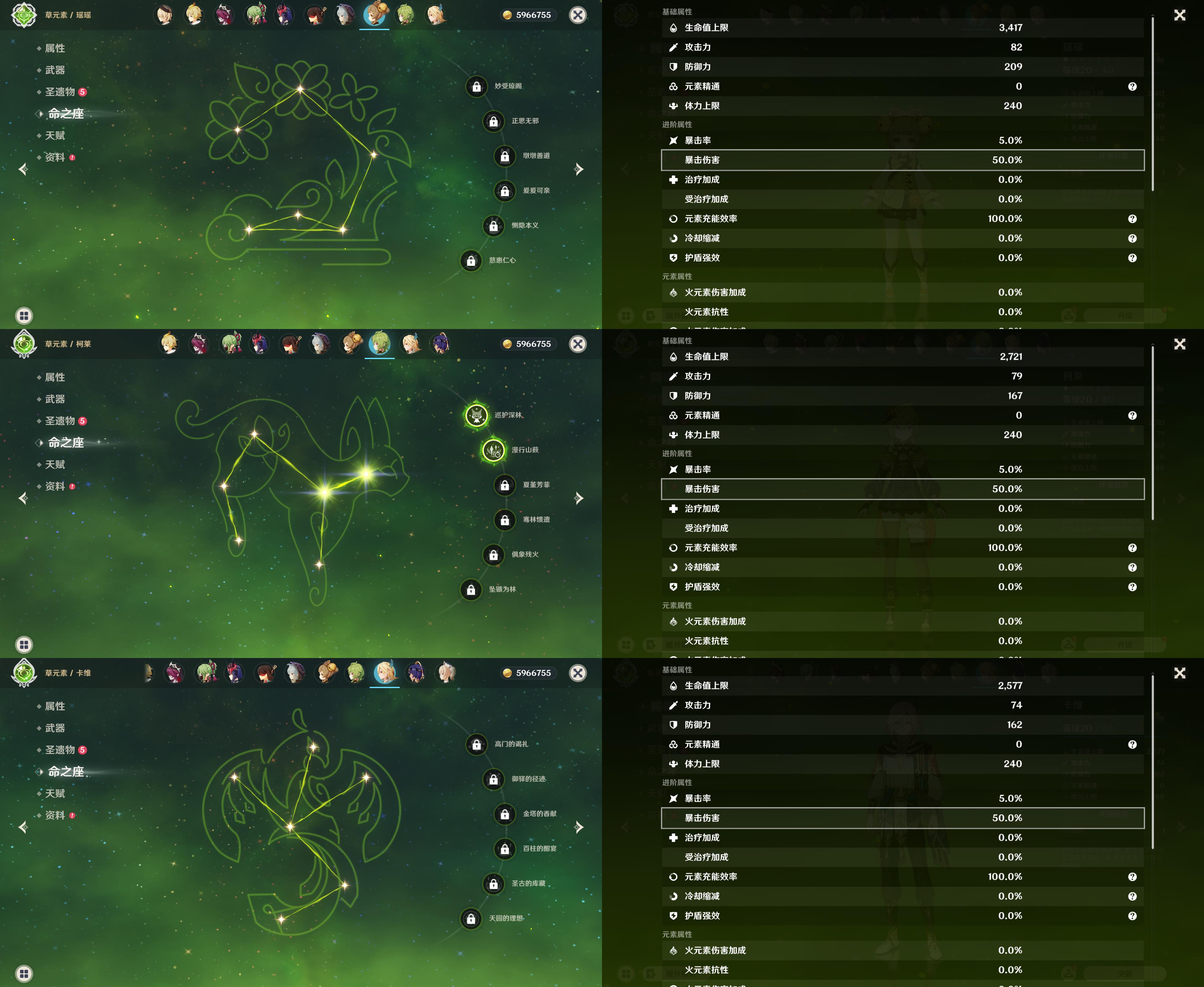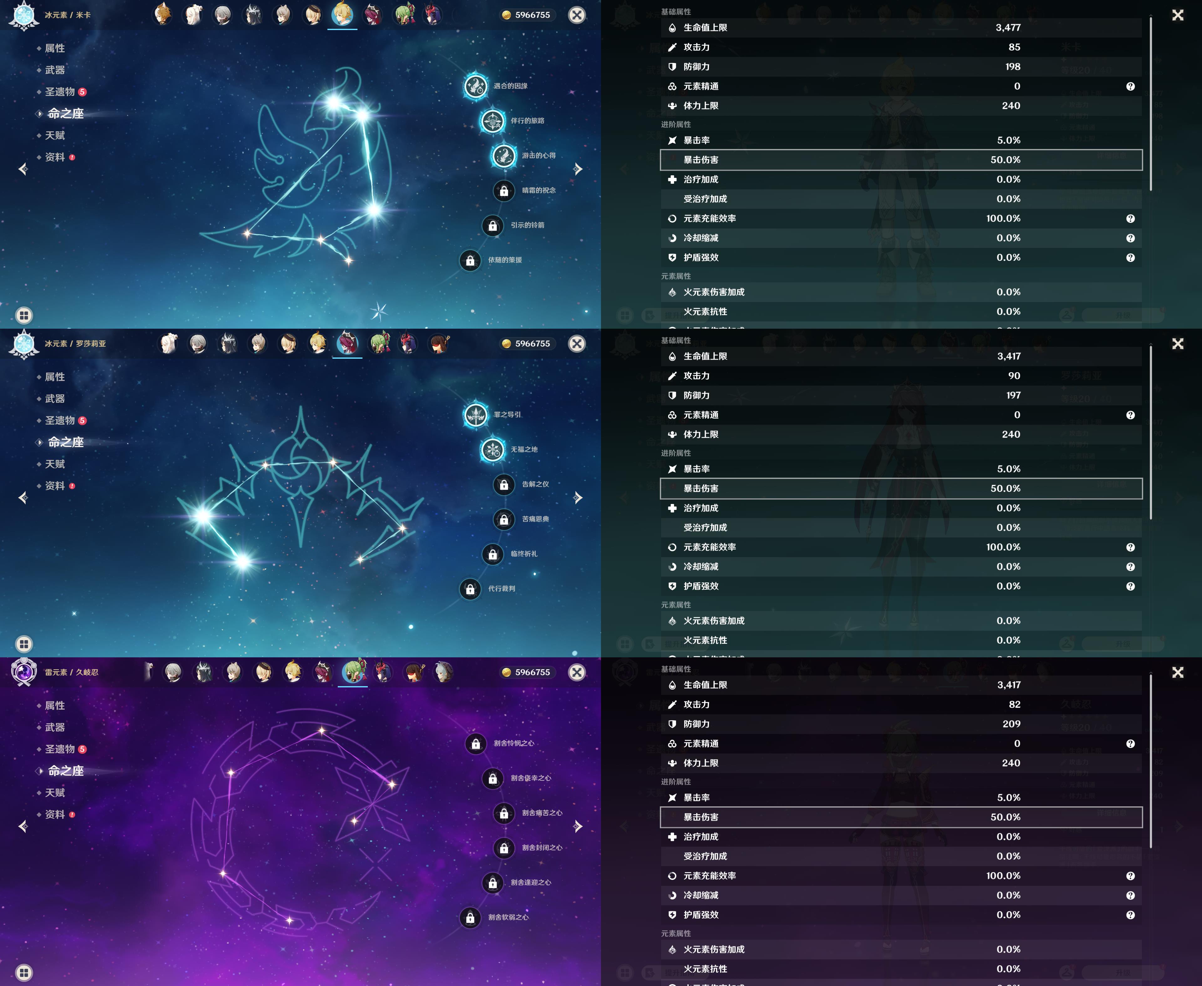 56级/17黄/女主/13个五星角色/1个五星武器/1命胡桃/夜兰/