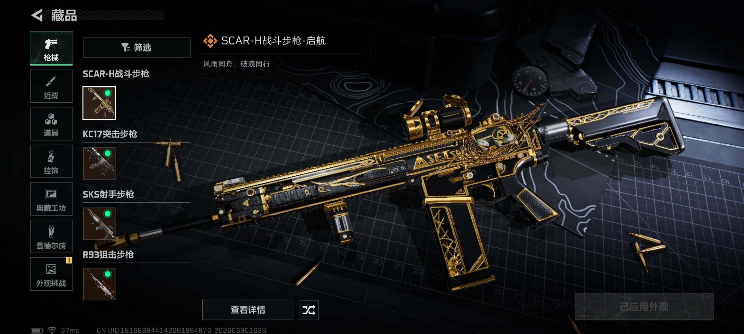 SCAR-H战斗步枪-启航/KC17突击步枪-电锯惊魂/SKS射手步枪-骑士/R93狙击步枪-维什戴尔/K416突击步枪-冬日风情/腾龙突击步枪-猎鳄行动/MP5冲锋枪-战术竞备/MP5冲锋枪-竞技风/勇士冲锋枪-工业狂潮/MP7冲锋枪-六套之力/M250通用机枪-囚徒/QJB201轻机枪-炽焰/SVD狙击步枪-阿萨拉工艺/M700狙击步枪-蝮蛇/M700狙击步枪-哈夫克警备/