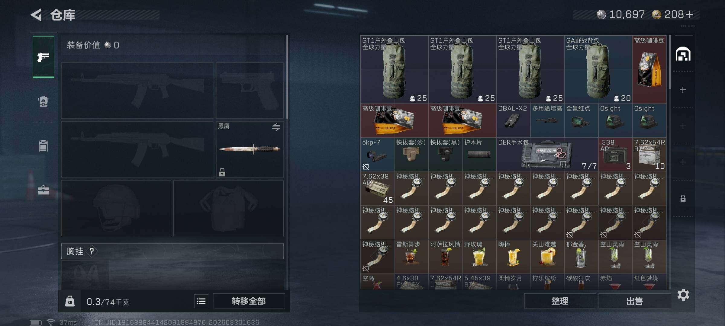总资产(M):4M/哈夫币(K):10K/传说枪皮数:4/全面战场等级:1_段位:无段位/烽火地带等级:60_段位:钻石/骇爪-维什戴尔/红狼-电锯惊魂/近战-黑鹰/