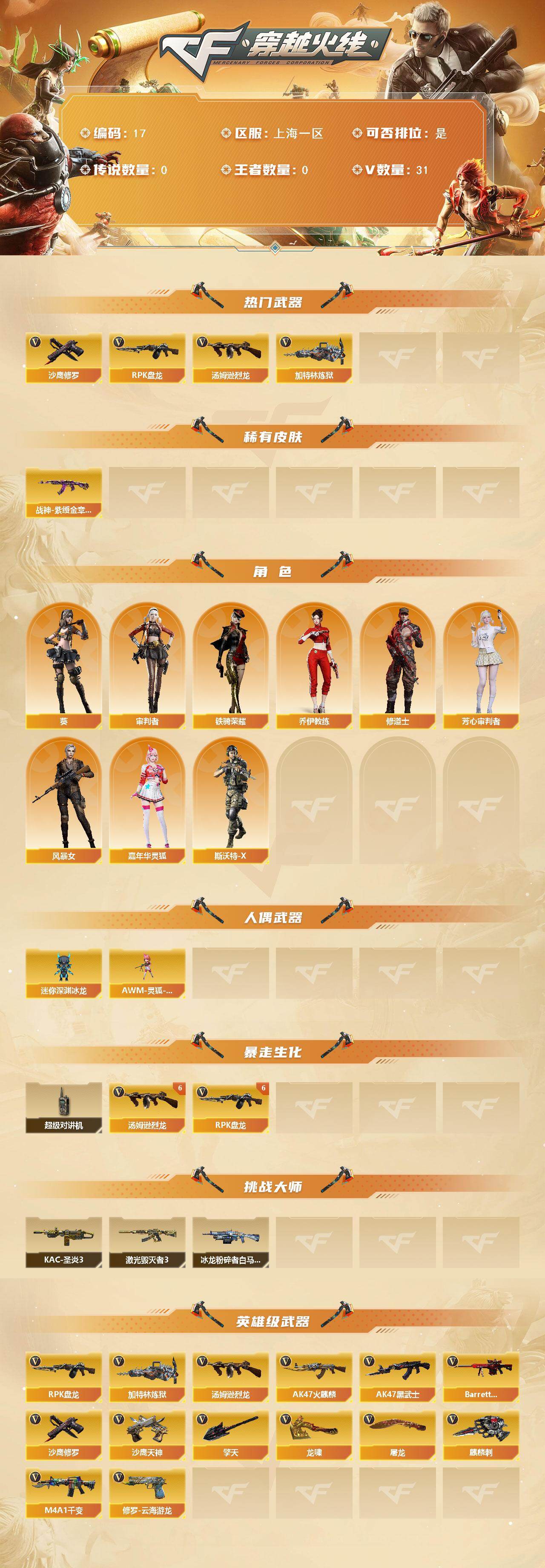 六烈龙六盘龙 上海一区-31V-0王者武器数-0炫金武器数
