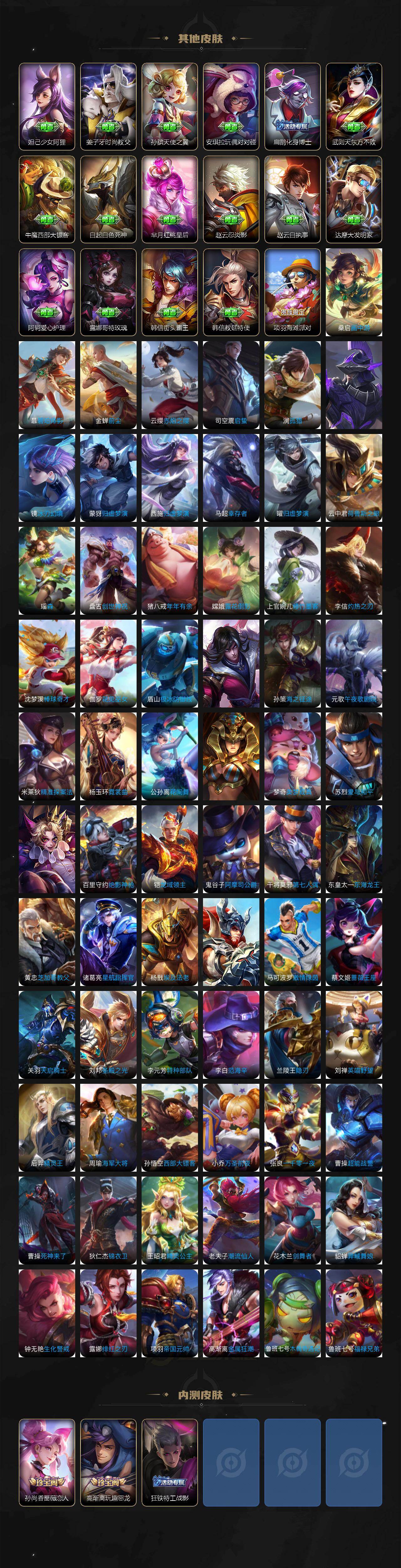 【英雄全皮】:橘右京全皮,苏烈全皮,狂铁全皮,金蝉全皮,空空儿全皮,影全皮,海诺全皮