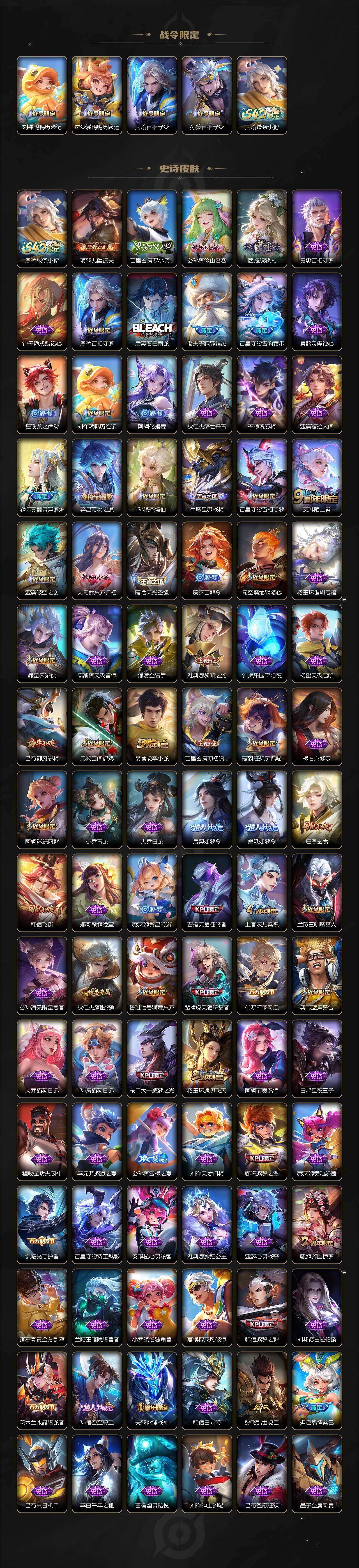 【英雄全皮】:苍全皮,雅典娜全皮,大司命全皮,澜全皮,司空震全皮,空空儿全皮,影全皮
