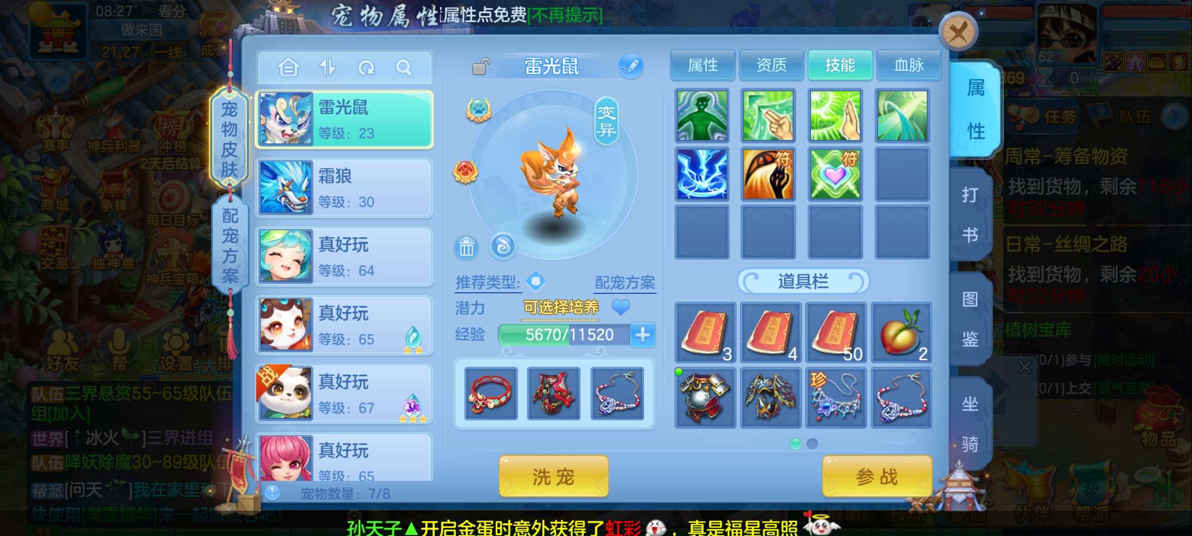 有5技能成品老鼠,30多个神兽灵,极品单攻护符,双月卡,还有1000多金