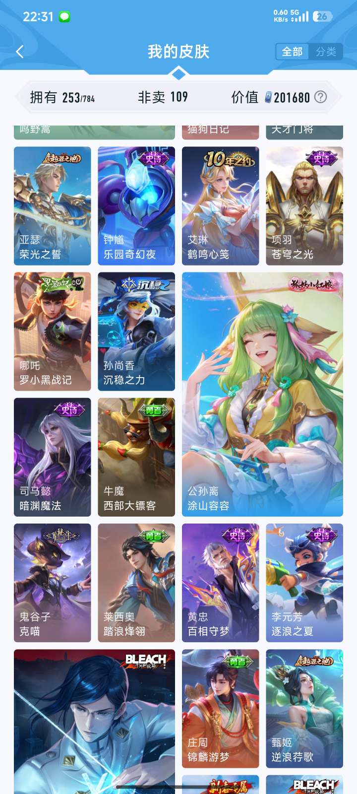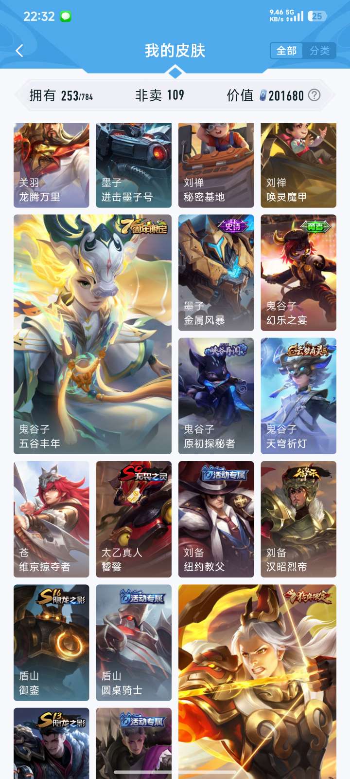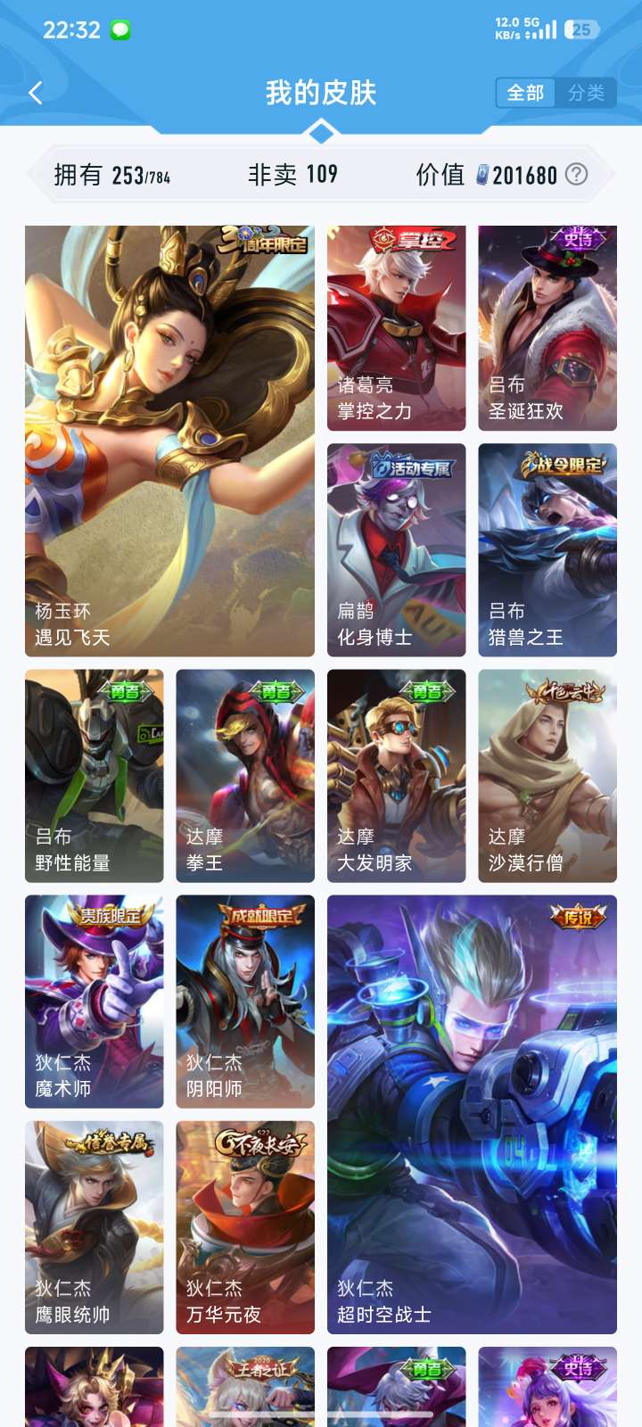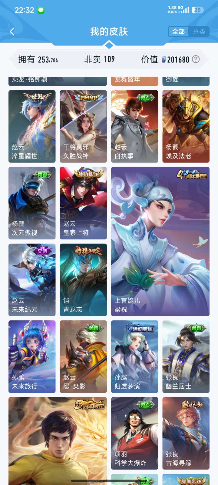 V7 皮肤253 英雄127 无双王者 荣耀典藏2 珍品传说1 星传说1 传说9
