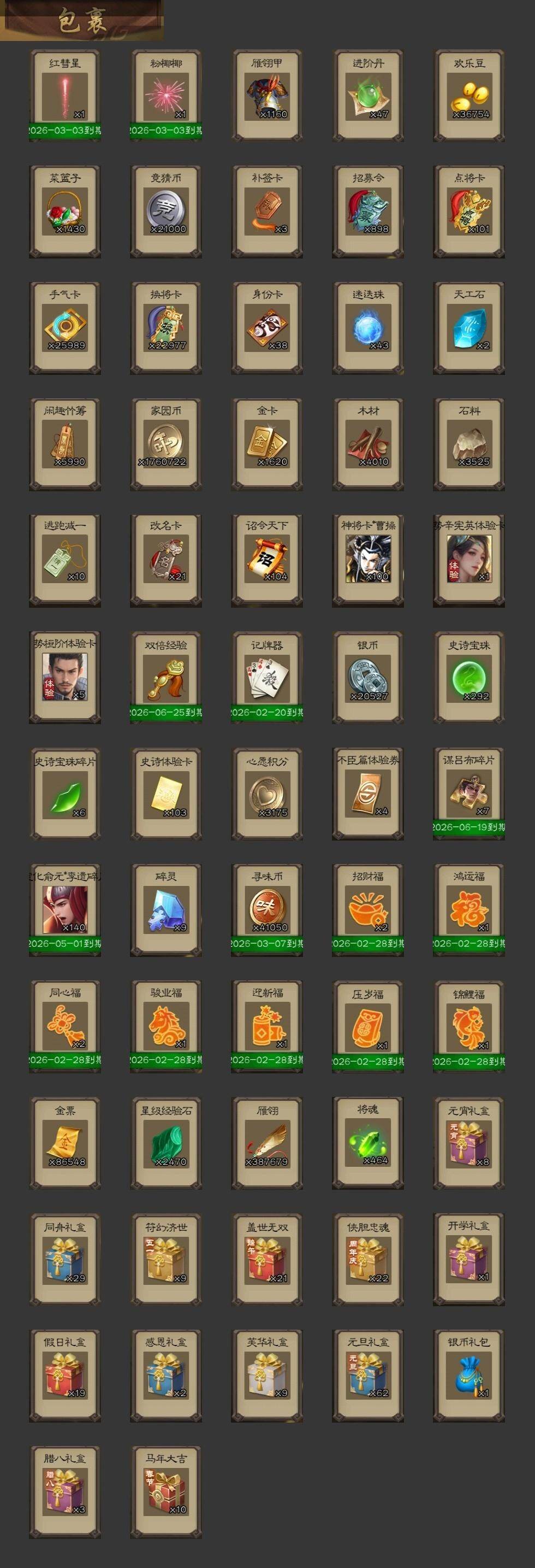官阶:大将军;VIP等级:VIP17;史诗武将数量:109;动态皮肤数量:131;武将总数:532;史诗宝珠数量:292;将魂数量:464;神将:13;魏国史诗武将:66;蜀国史诗武将:18;吴国史诗武将:16;群史诗武将:36