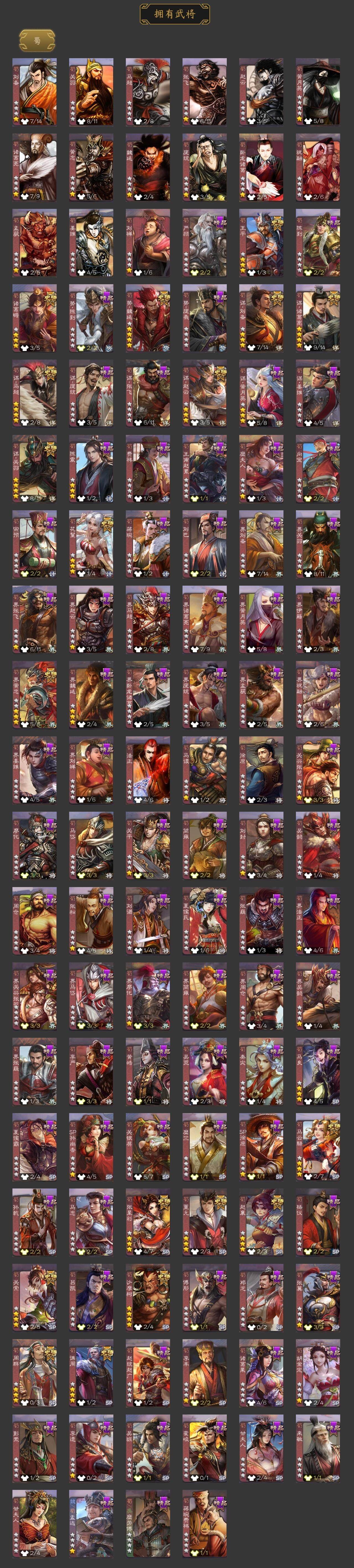 神曹操,神吕布,神赵云,神陆逊,神刘备,神甘宁,神张辽,神郭嘉,神太史慈,神孙策,神荀彧,神诸葛亮,神鲁肃,SP司马昭,曹髦,星周不疑,王粲,杨修,王元姬,王凌,王朗,