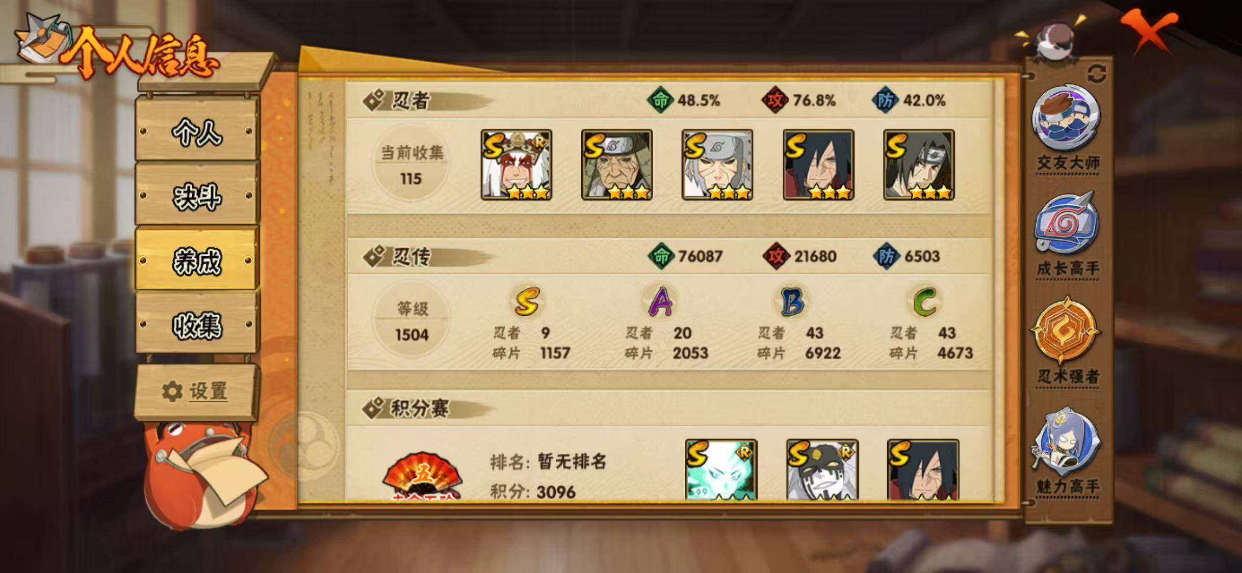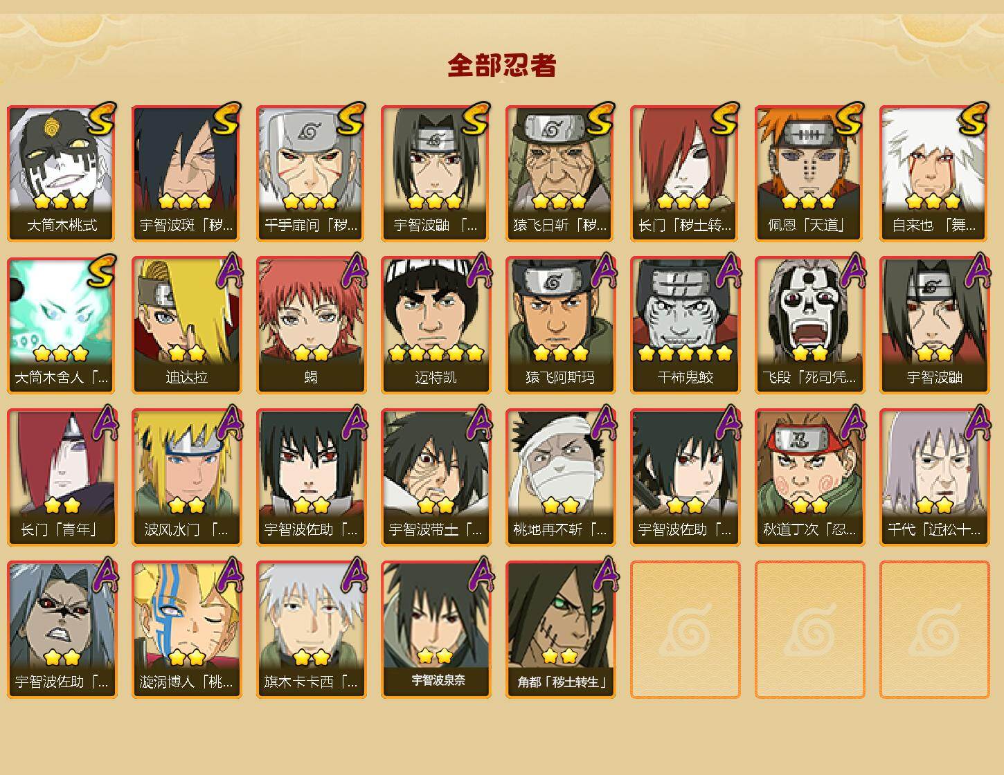 【A级忍者】:长门「青年」(2星),波风水门「青年」(2星),迪达拉(2星),飞段「死司凭血」(2