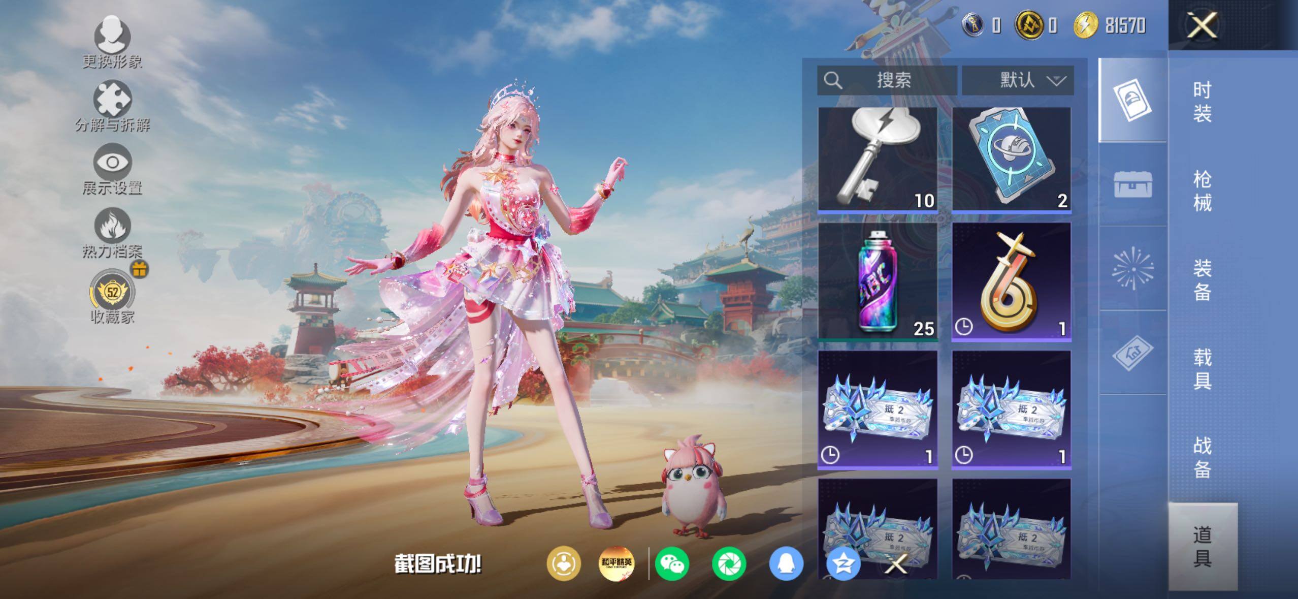 苹果 手Q-2粉装-10特效枪-0载具-2粉色飞行器-42015热力值-12王牌印记-87套装-122枪皮