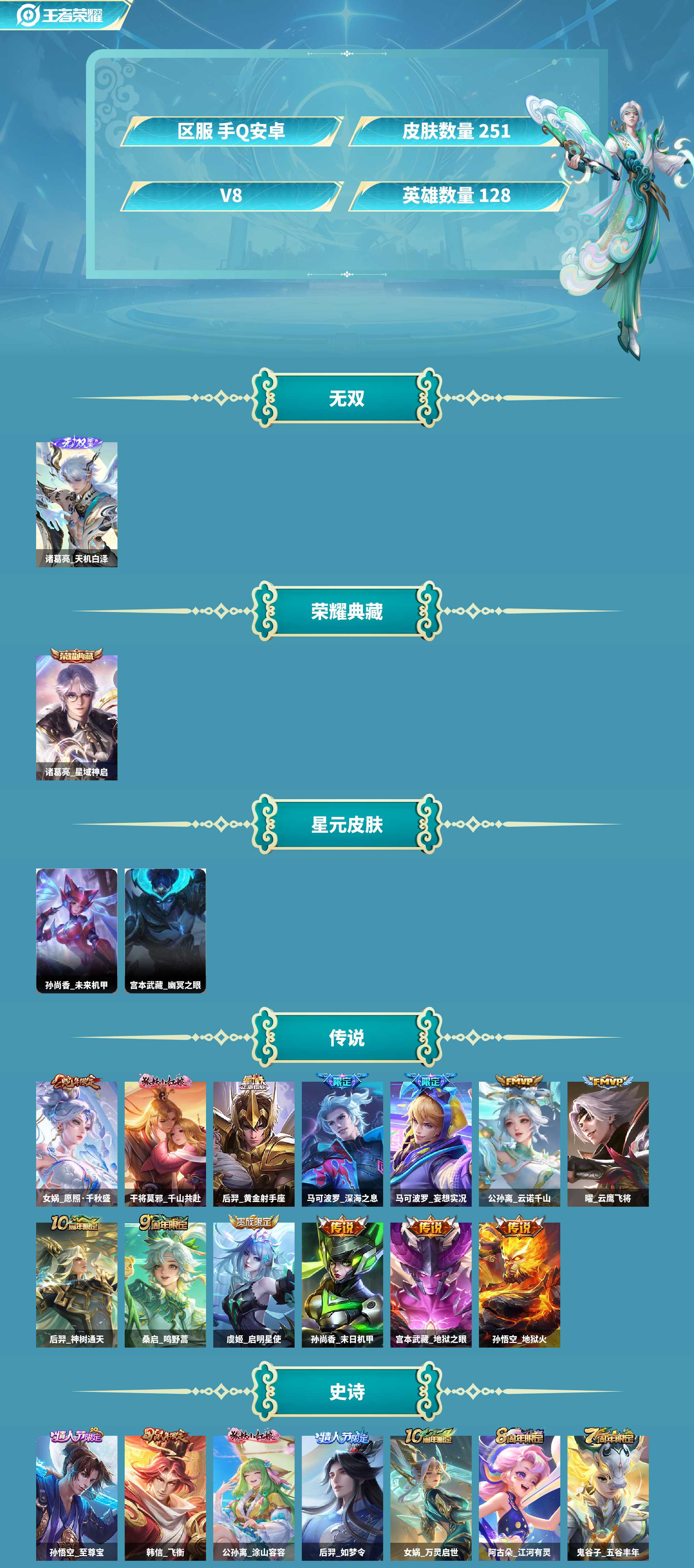 金标鲁班!白泽+典藏诸葛!皮肤数量251印记总数21V8最强