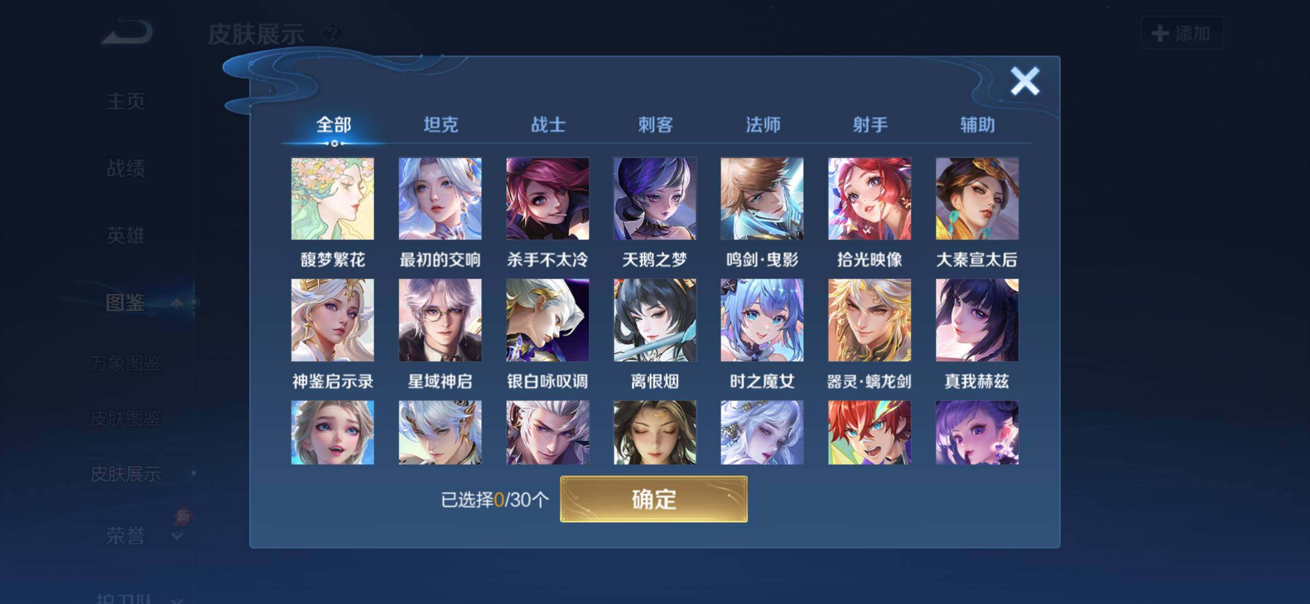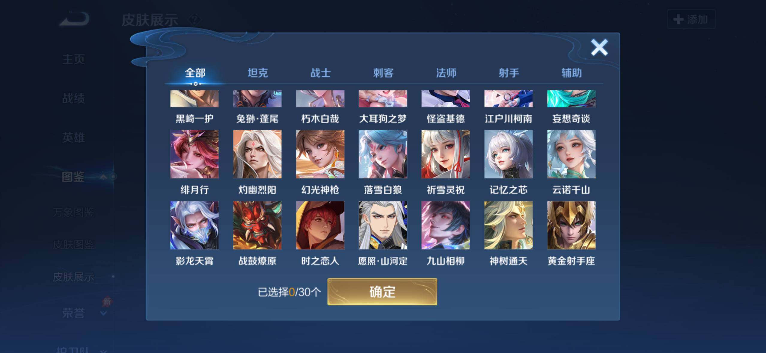 【英雄全皮】:司马懿全皮,孙权全皮,朵莉亚全皮,杨玉环全皮,苍全皮,瑶全皮,亚连全皮,敖隐全皮,西施全皮,澜全皮,司空震全皮,暃全皮,莱西奥全皮,戈娅全皮,空空儿全皮,影全皮,少司缘全皮
