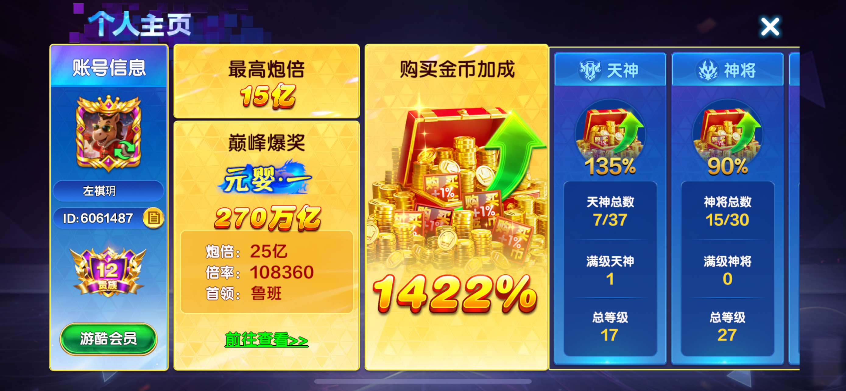 100万亿=20 VIP12 天神副炮倍率60% 联系勿直拍