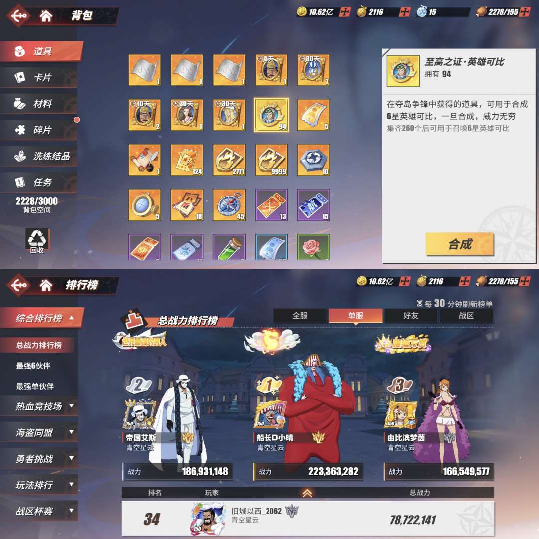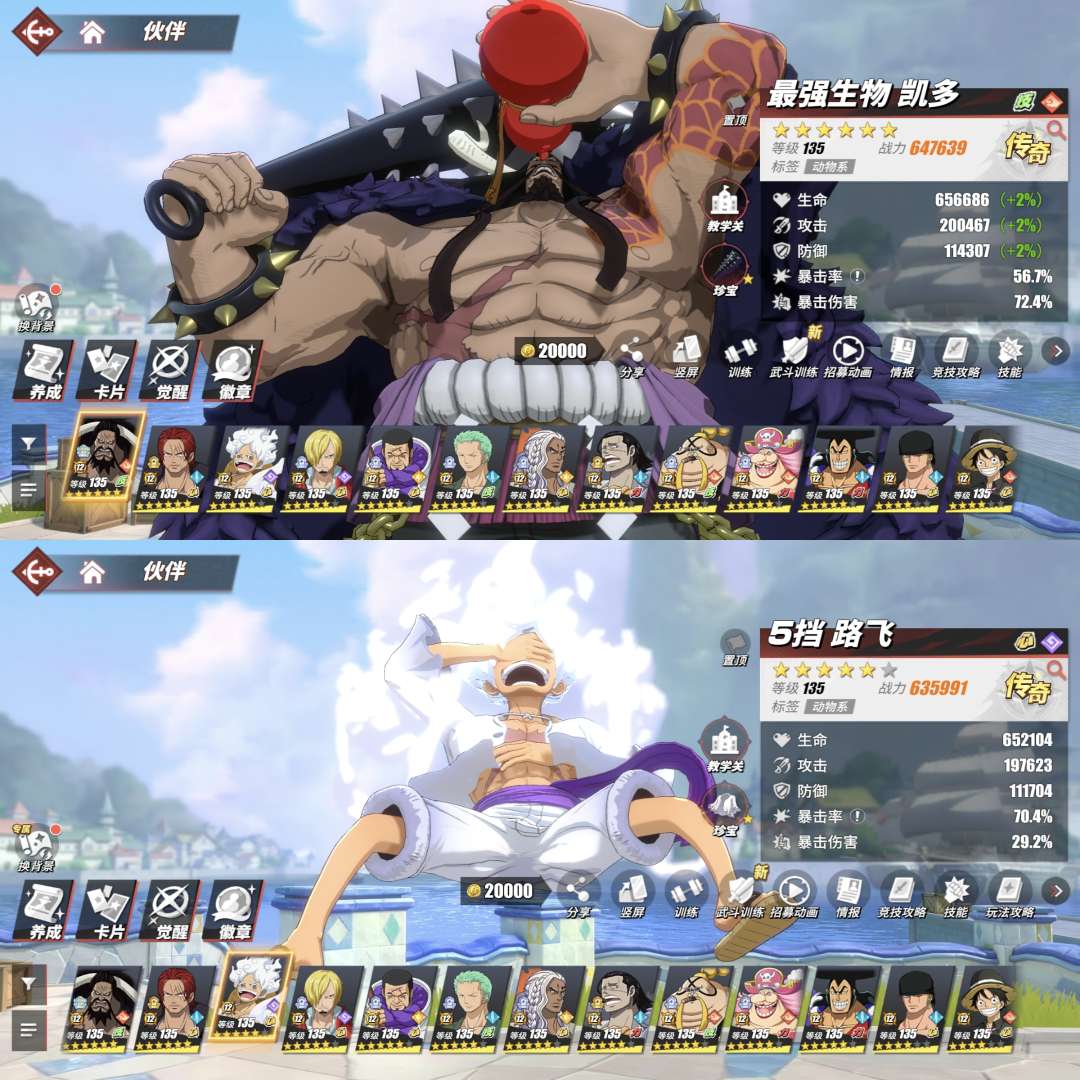 7872万战力。青年卡普。尼卡路飞84传奇14强者。1神船28艘船。珍宝:6凯多。尼卡。强者十字老