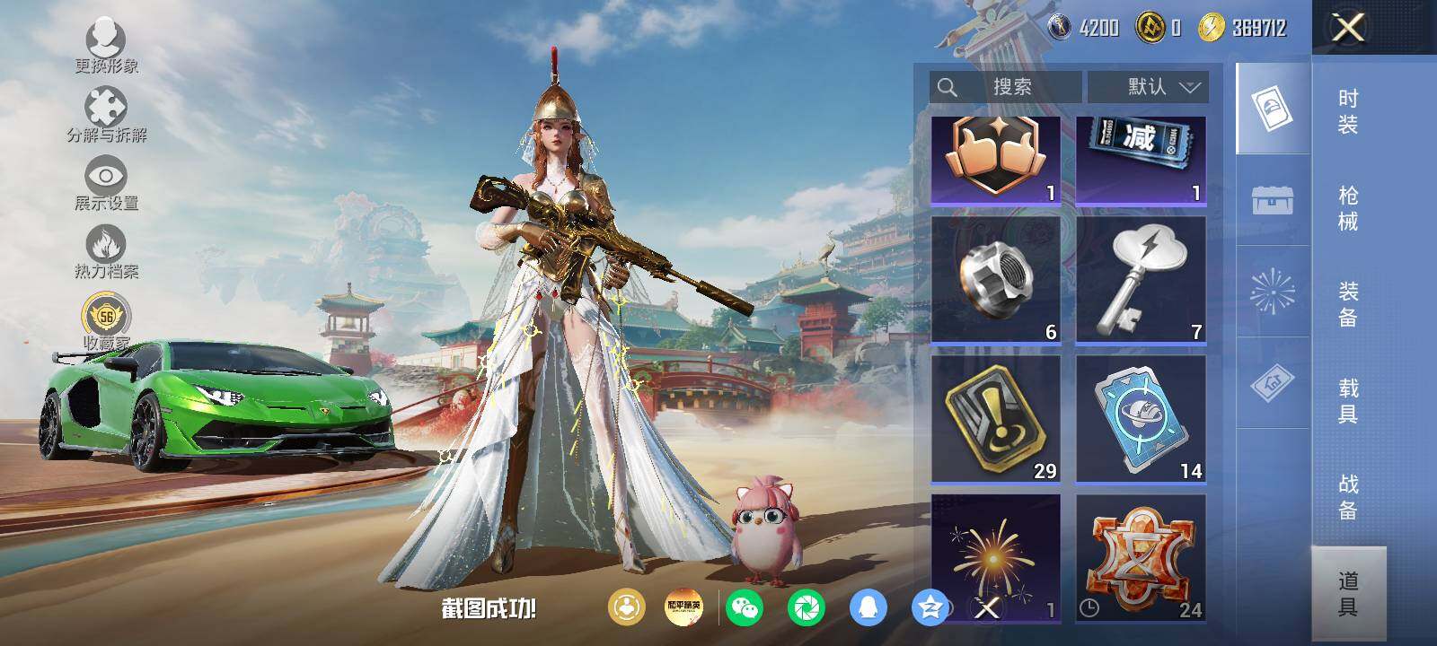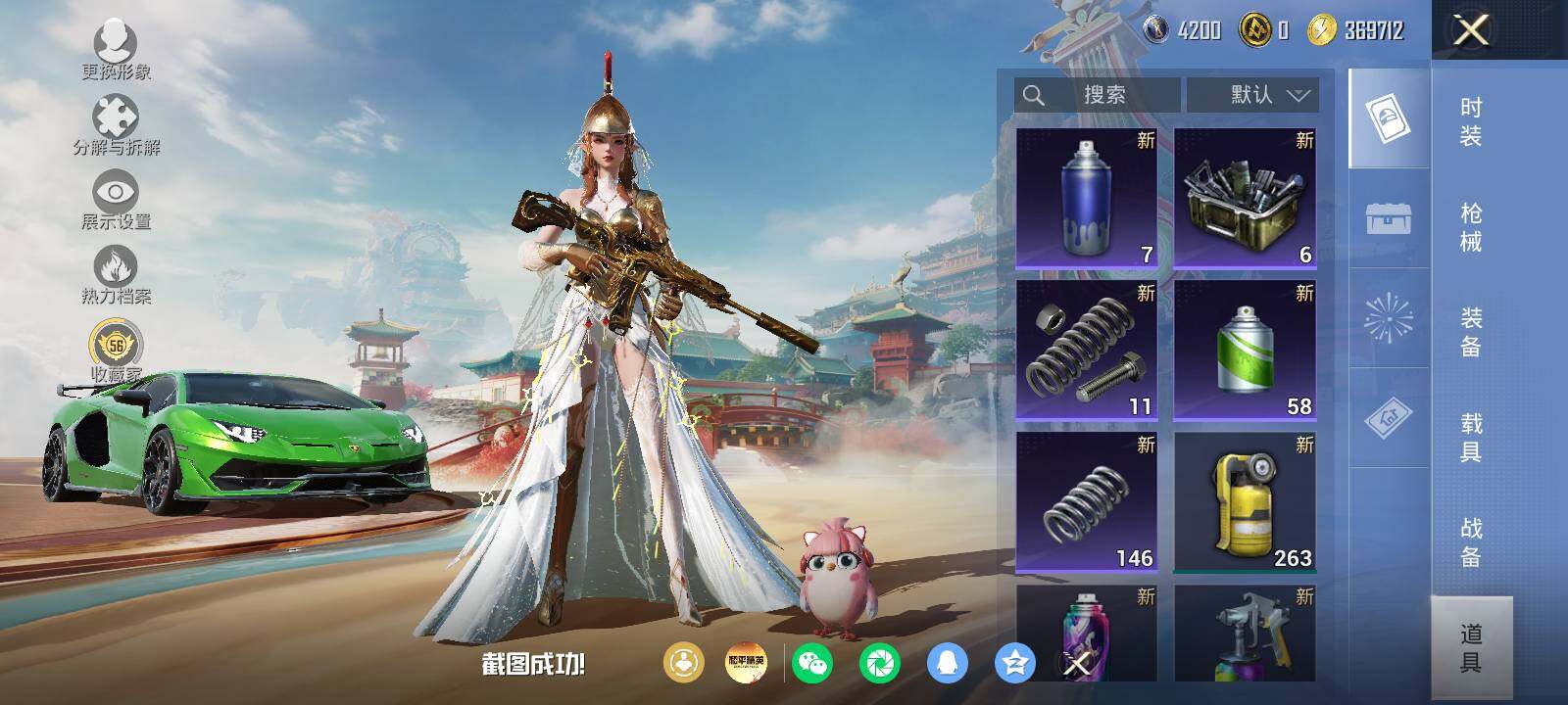 安卓 手Q-8粉装-6特效枪-1载具-1粉色飞行器-52741热力值-5王牌印