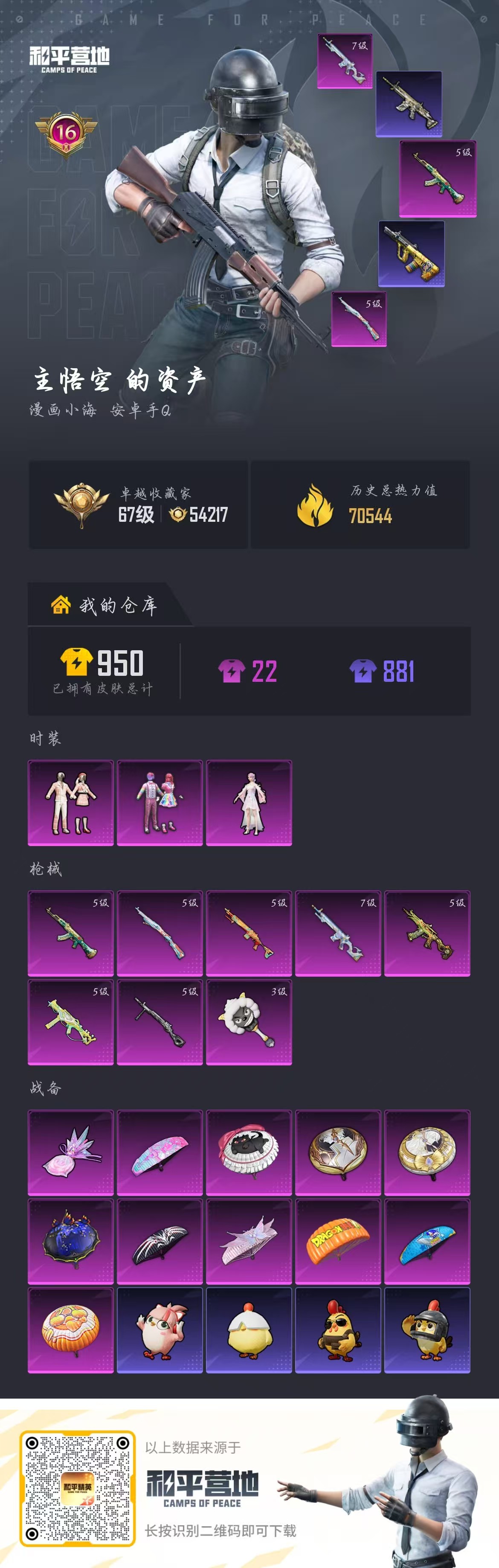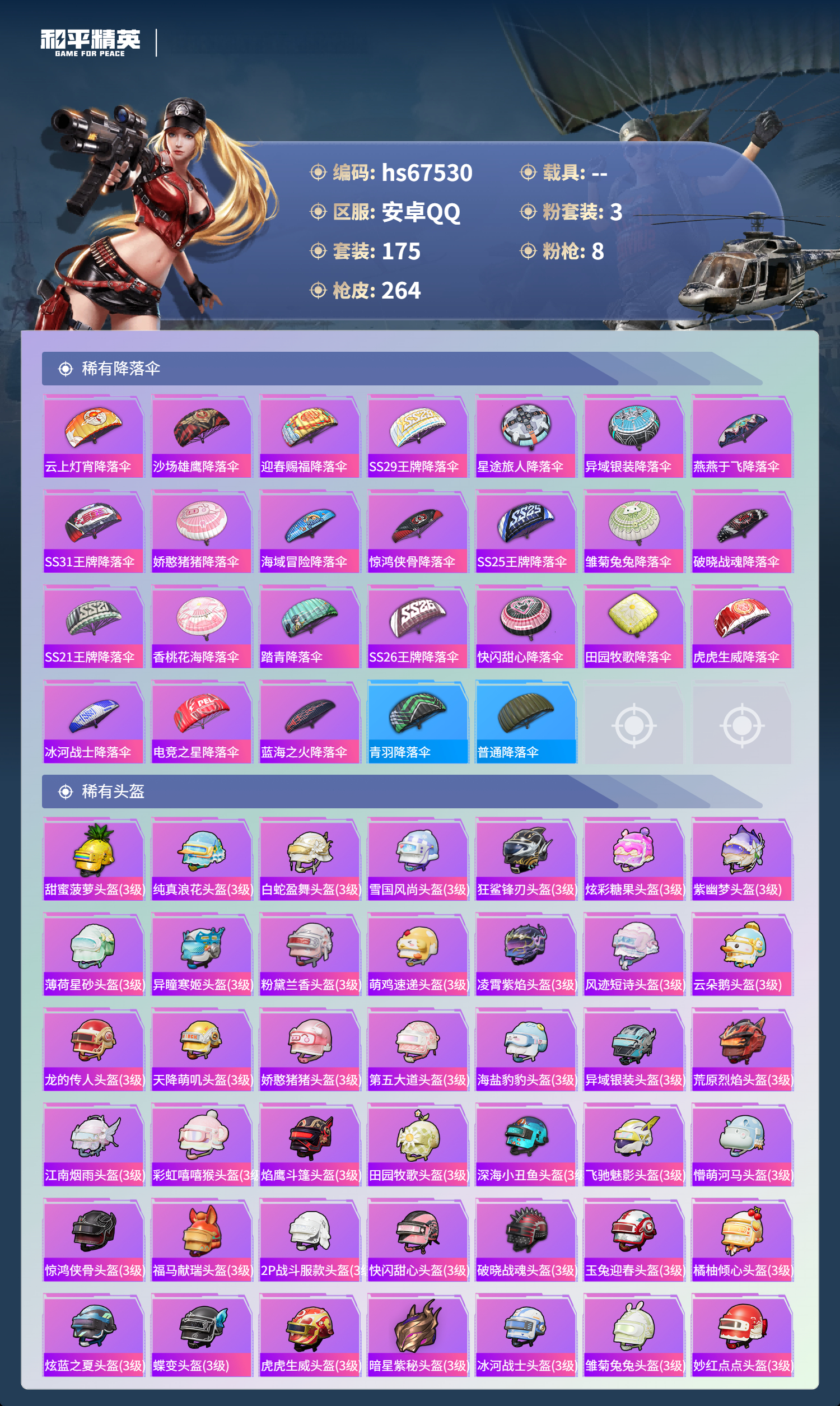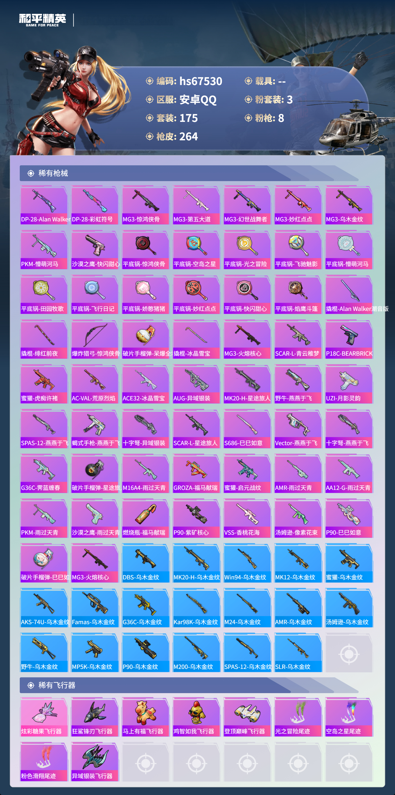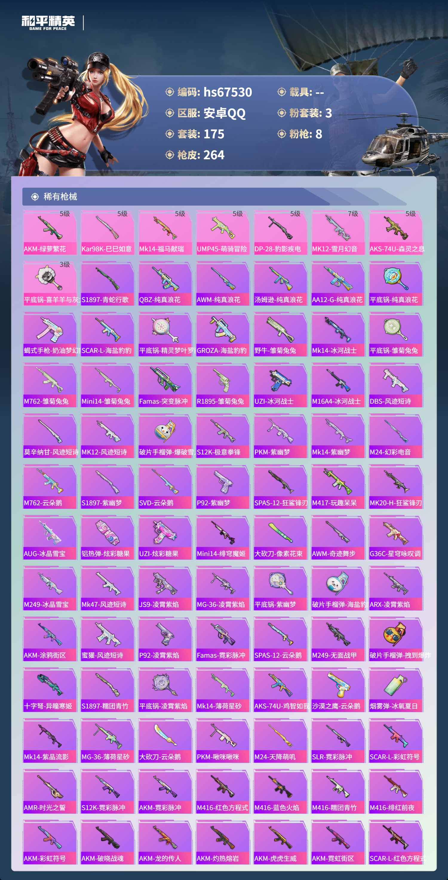 hs67530 安卓手Q-16王牌印记-3粉装-8特效枪-70544热力值-175套装-264枪皮