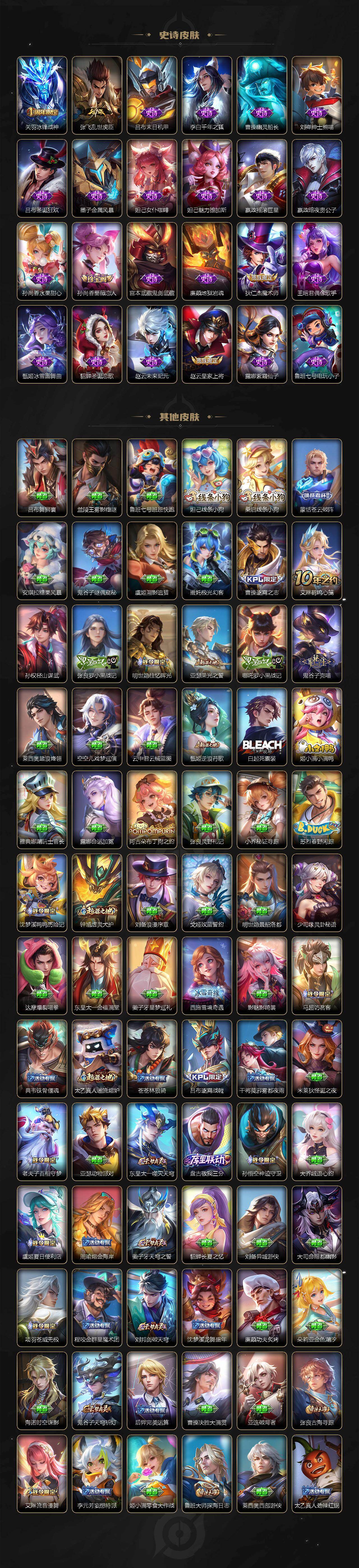 【英雄全皮】:孙权全皮,苍全皮,鬼谷子全皮,敖隐全皮,夏洛特全皮,莱西奥全皮,空空儿全皮