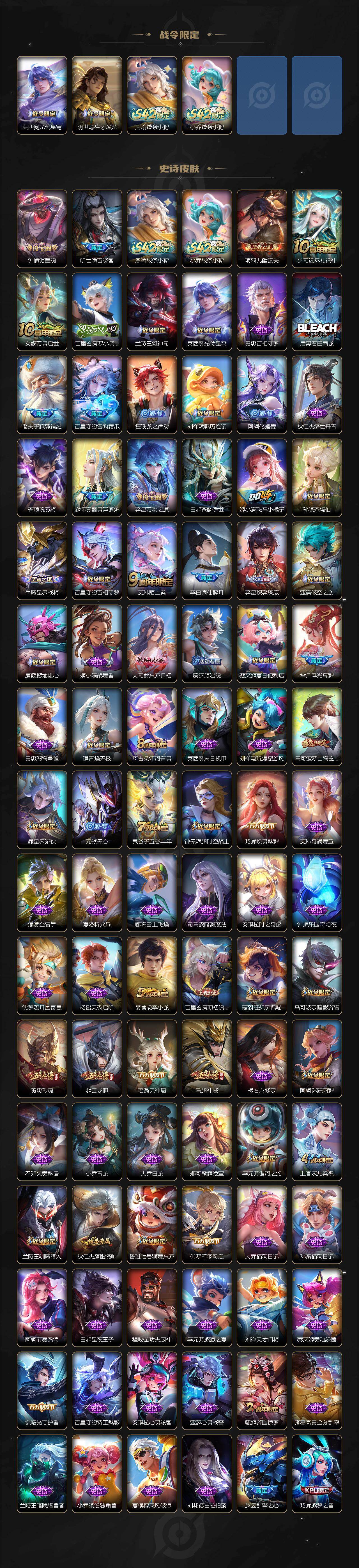 安卓Q-V9-最强王者段位-128英雄-414皮肤-2典藏皮肤-1无双-5珍品传说-52传说-119史诗