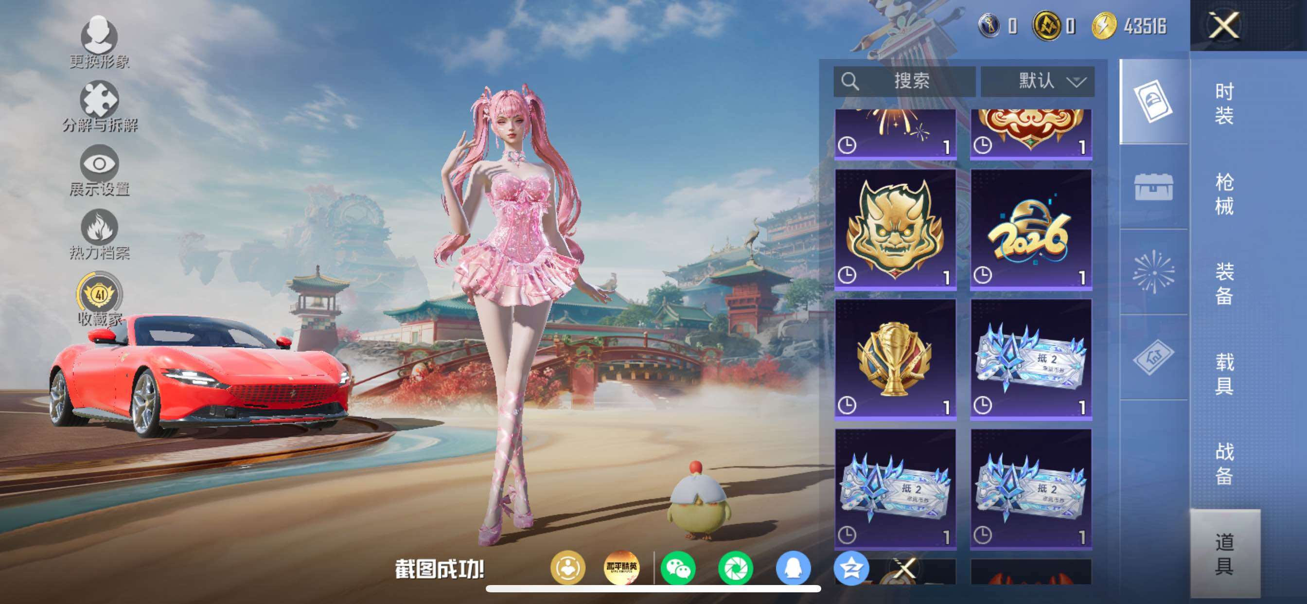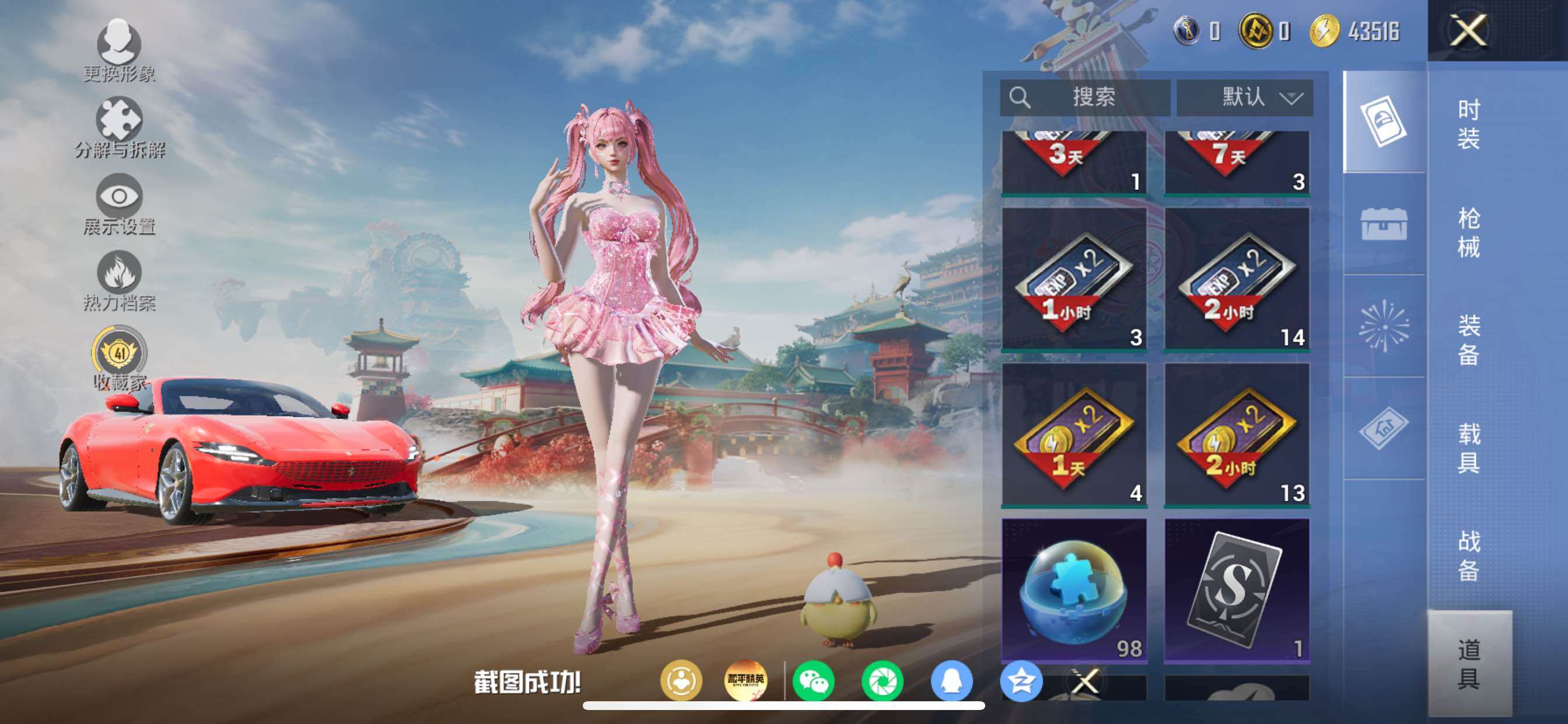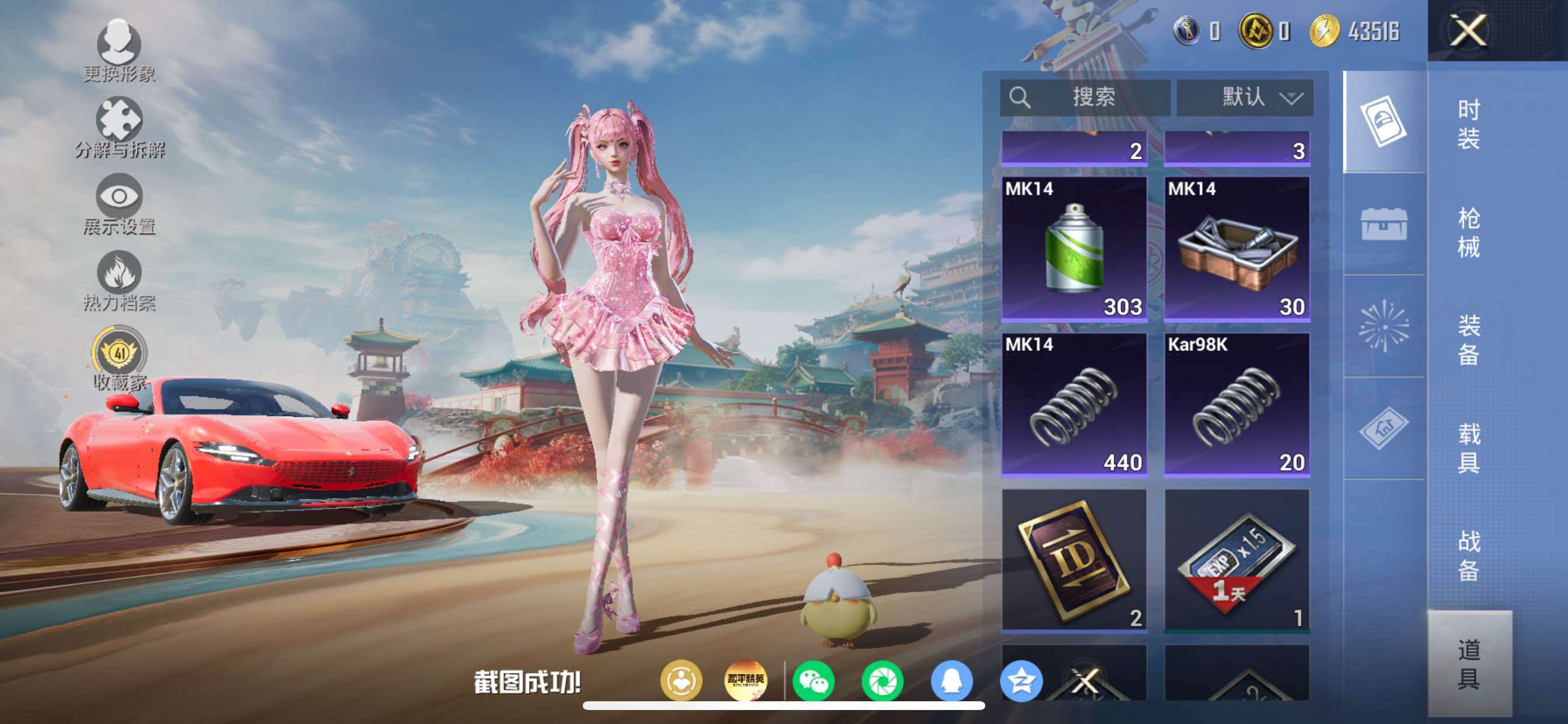 苹果 手Q-5粉装-4特效枪-2载具-2粉色飞行器-24162热力值-2王牌印