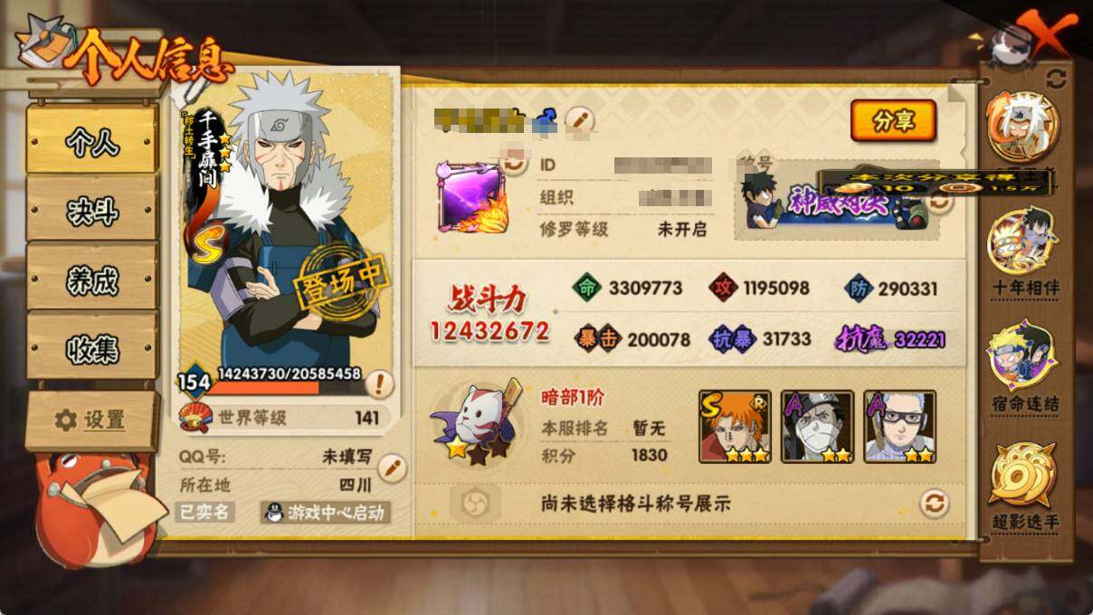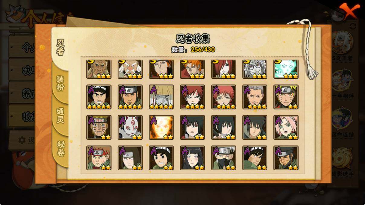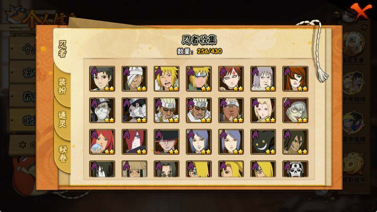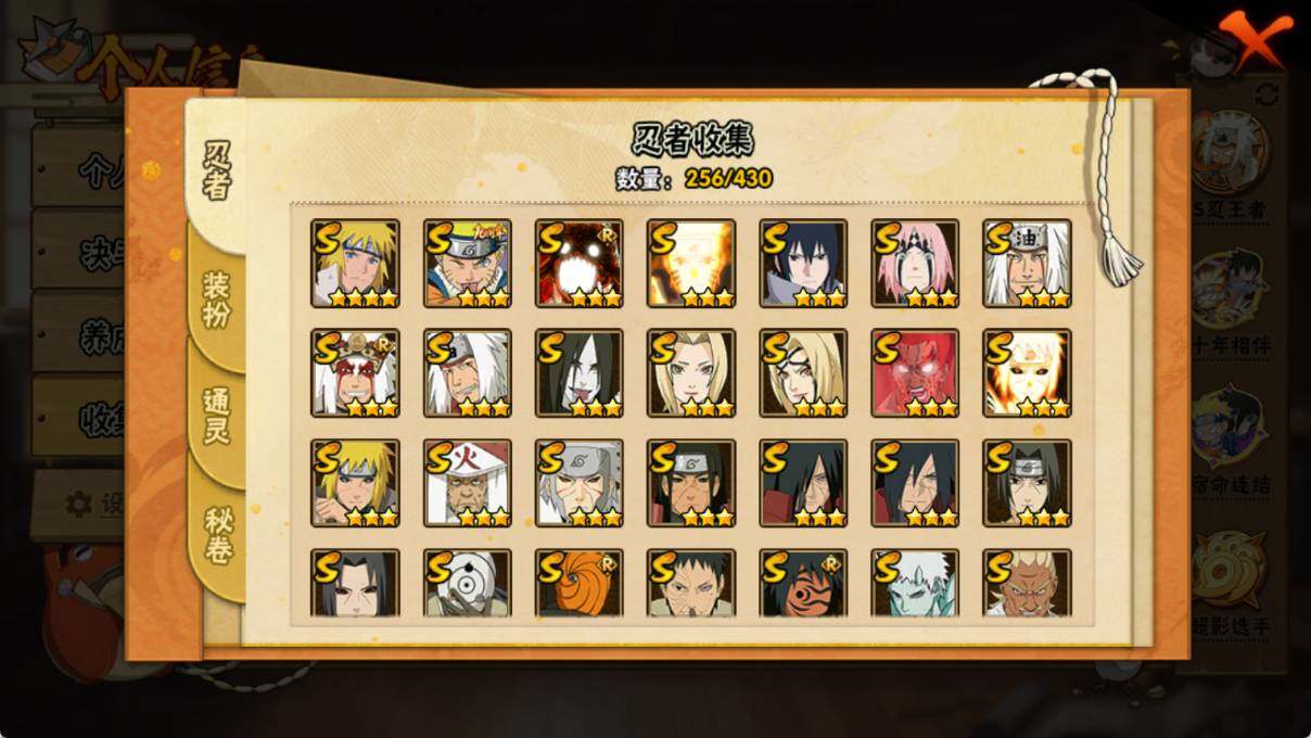 【S级忍者】:长门「秽土转生」(3星),波风水门「秽土转生」(3星),千手扉间「秽土转生」(3星),千手柱间「秽土转生」(3星),宇智波鼬「秽土转生」(3星),宇智波斑「秽土转生」(3星),宇智波斑「秽土转生·解」(3星),大野木「忍界大战」(3星),春野樱「忍界大战」(3星),宇智波带土「忍界大战」(3星),艾「忍界大战」(3星),宇智波鼬「须佐能乎」(3星),艾「三代目雷影」(3星),自来也(3星),自来也「舞之豪杰」(3星),大蛇丸(3星),自来也「传说中的