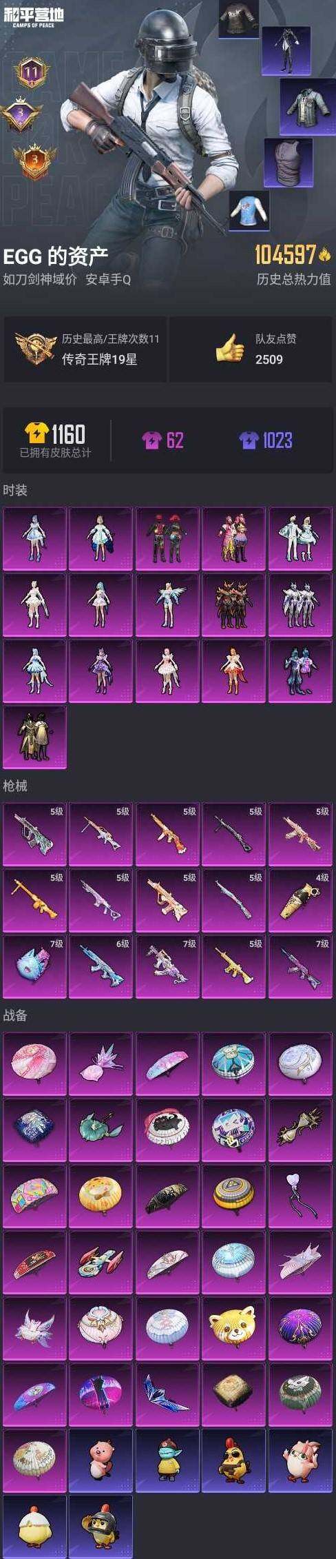 【秒换绑】安卓 手Q-16粉装-15特效枪-0载具-7粉色飞行器-104597热力值-11王牌印记-217套装-324枪皮