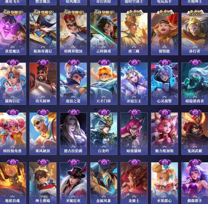 【传说皮肤】:桑启鸣野蒿,吕布曦玄引,铠琥珀纪元,吕布怒海麟威,后羿无尽星芒,孙策末日机甲,赵云淬星耀世,铠绛天战甲,虞姬启明星使,孙悟空零号赤焰,李信一念神魔,后羿黄金射手座,孙悟空地狱火