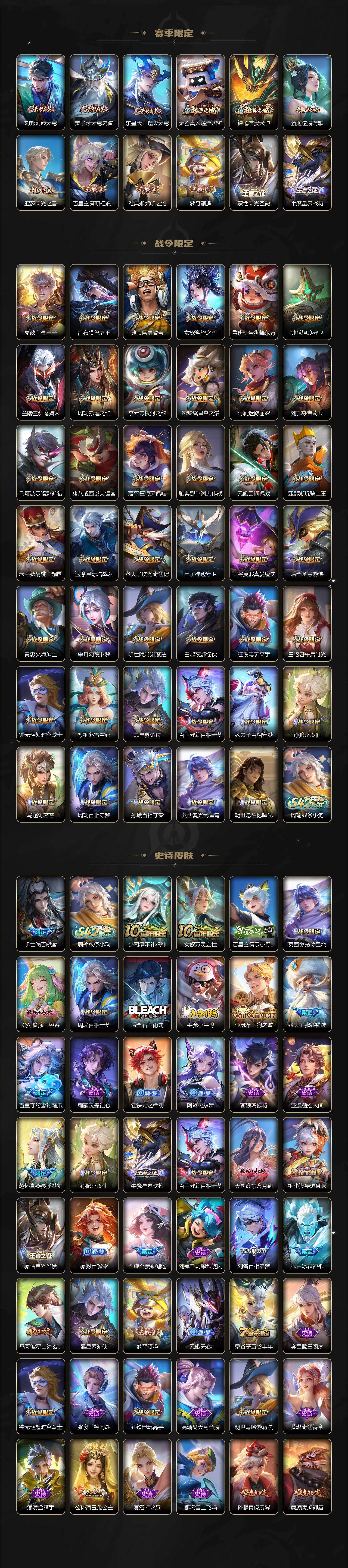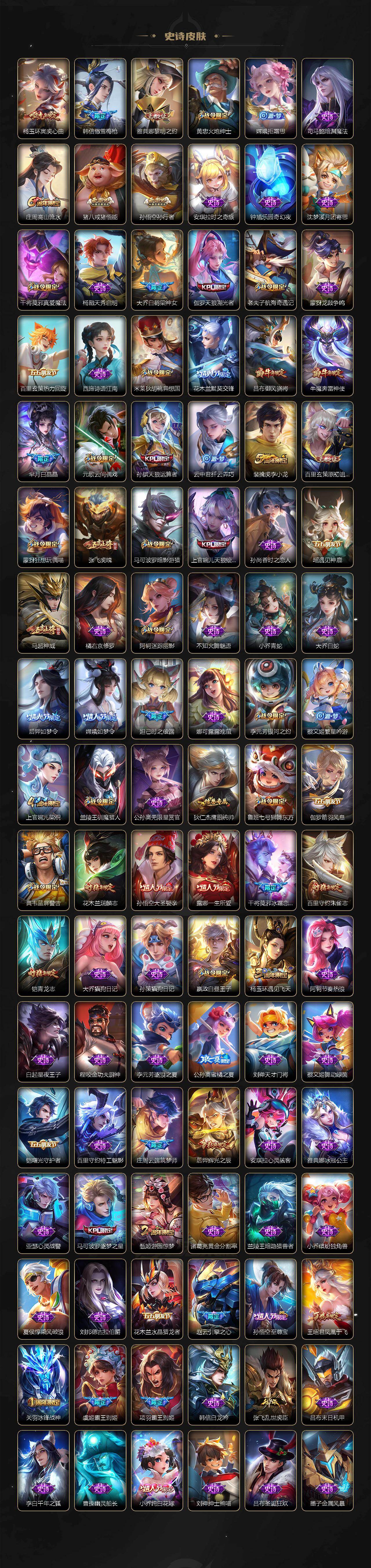 【英雄全皮】:嬴政全皮,刘邦全皮,孙权全皮,娜可露露全皮,牛魔全皮,苍全皮,鬼谷子全皮,狂铁全皮,猪八戒全皮,敖隐全皮,蒙恬全皮,空空儿全皮