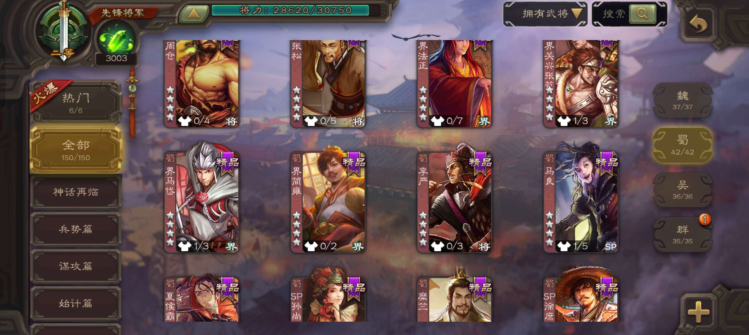 10万羽毛3千将魂,大宝界徐盛界左慈张让谯周董允5史诗先锋,谋韩当甘夫人势田丰150将