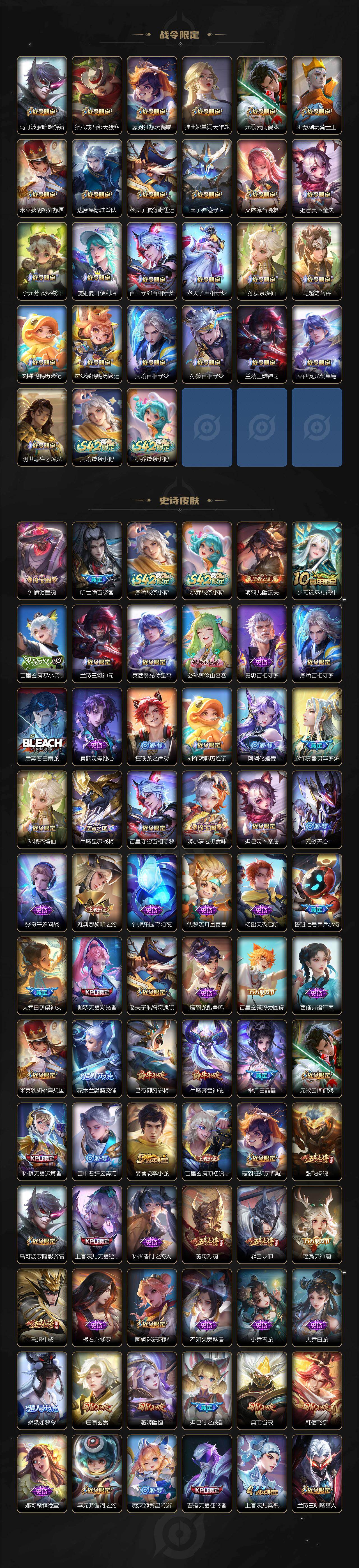 营地账 安卓Q-V10-最强王者段位-129英雄-490皮肤-10典藏皮肤-1典藏英雄-1无双-1珍品传说-50传说-153史诗