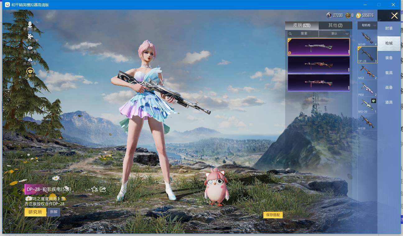 时装数: 392 枪械数: 128 战备数: 82 热门装扮: 梦魇先生 稀有枪皮:M416-电玩时刻(五级),GROZA-镜光银凌(五级),Kar98K-巳巳如意(五级),Mk14-福马献瑞(五级),DP-28-豹影疾电(五级)