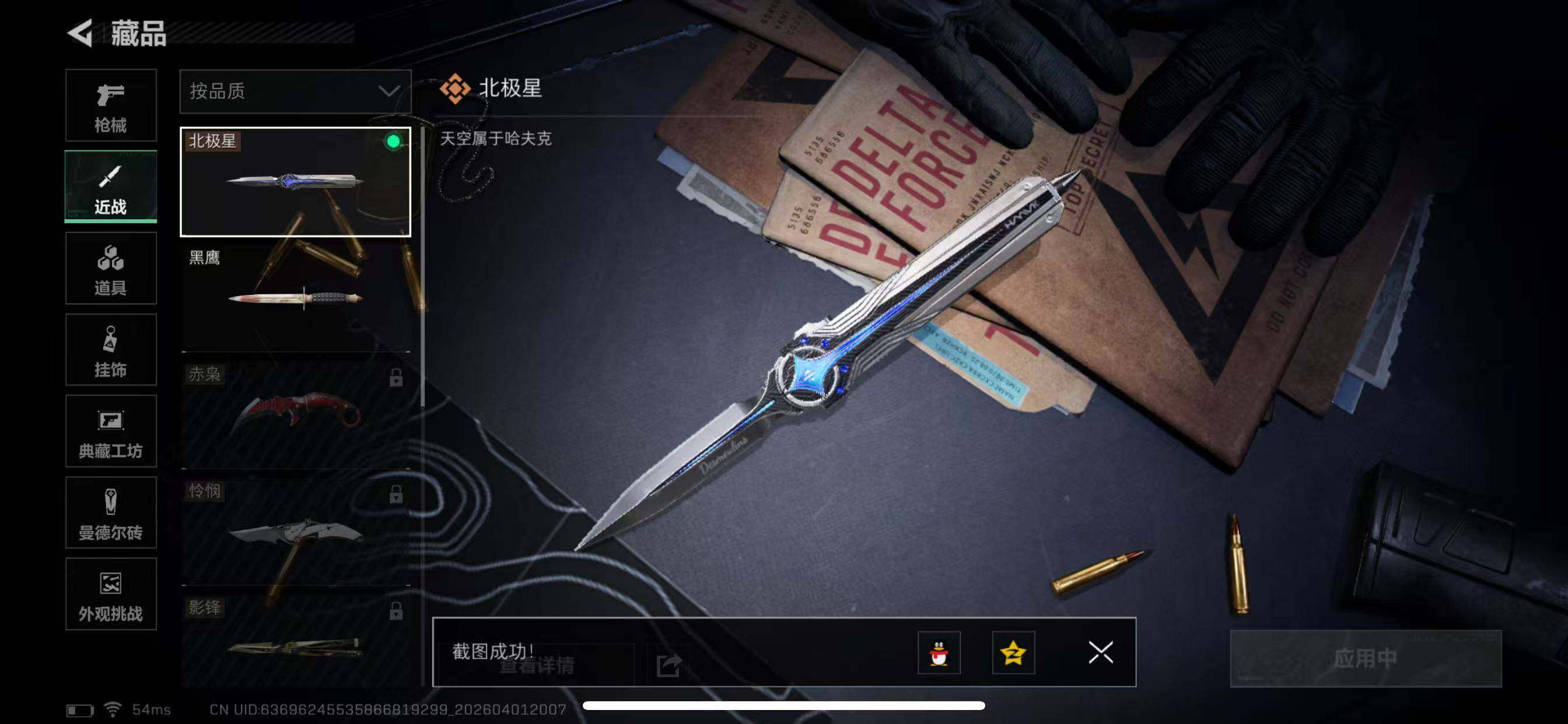 【近战皮肤】:近战-北极星,近战-黑鹰