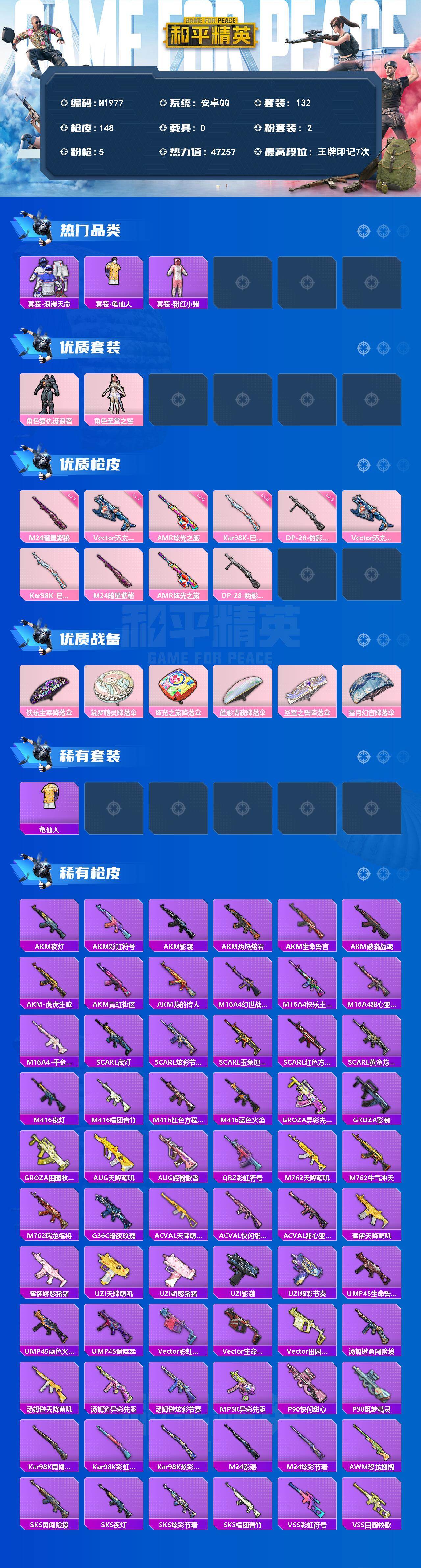 安卓 手Q-2粉装-5特效枪-0载具-0粉色飞行器-47257热力值-7王牌印记-132套装-148枪皮