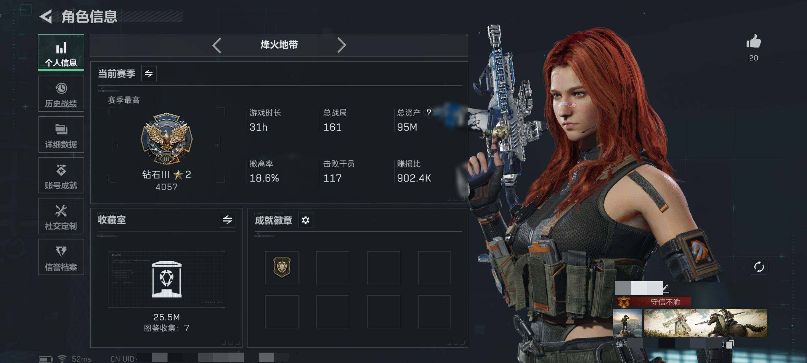 【S828】【高资产/近战-电锯惊魂】97m总资产-10670k哈夫币-60烽火等级-钻石-19战场等级-列兵