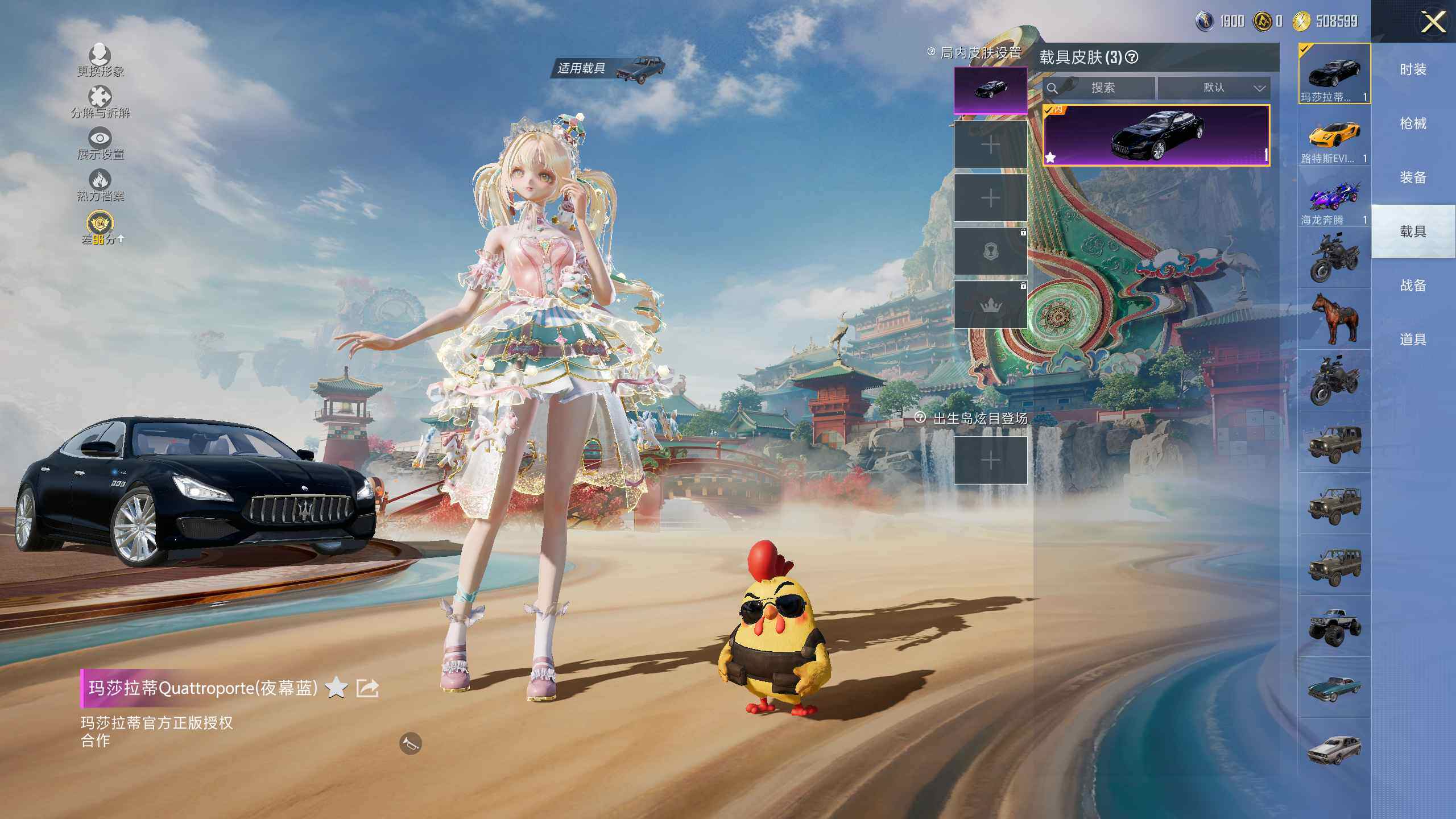 【粉色载具】:路特斯EVIJA(星际黄),玛莎拉蒂Quattroporte(夜幕蓝),海龙奔腾