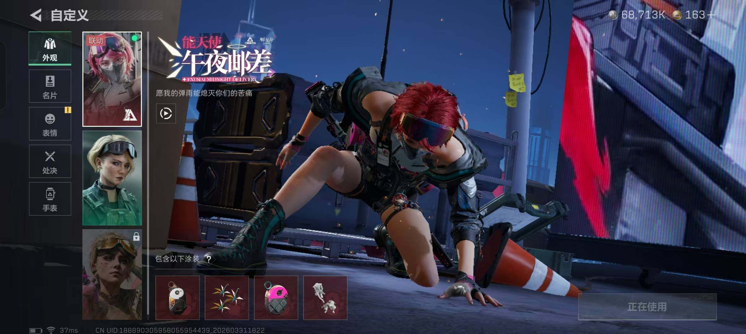 【干员外观】:红狼-蚀金玫瑰,骇爪-水墨云图,蛊-能天使午夜邮差,威龙-凌霄戍卫,威龙-壮志凌云,蜂医-送葬人·无题密令,牧羊人-街头之王,无名-夜鹰,深蓝-不破誓约,红狼-电锯惊魂,露娜-金牌射手,乌鲁鲁-荒原猎手