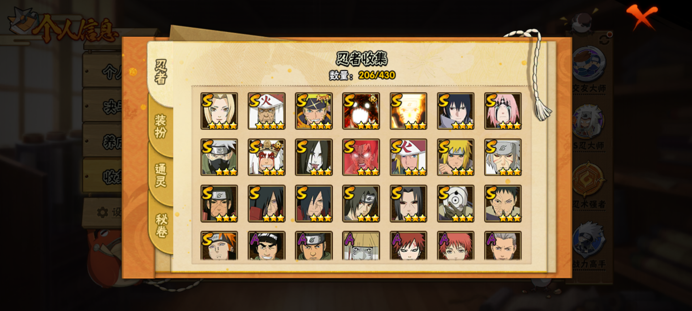 WLHY583【安卓Q 22S 45A V10 】无二次 【区服】1987【等级】150【S级数量】22【A级数量】45【B级数量】81【C级数量】58【S级】宇智波佐助「永恒万花筒」 猿飞日斩 千手柱间「秽土转生」 漩涡鸣人「暴怒·第六尾」 迈特凯「死门」 大蛇丸 纲手 佩恩「天道」 自来也「舞之豪杰」 波风水门 波风水门「秽土转生」 宇智波斑「白面具」 宇智波斑「秽土转生」 宇智波斑「秽土转生·解」 漩涡鸣人·宇智波佐助 宇智波鼬「须佐能乎」 春野樱「忍界大战」 旗木卡卡西「须佐能乎」 宇智