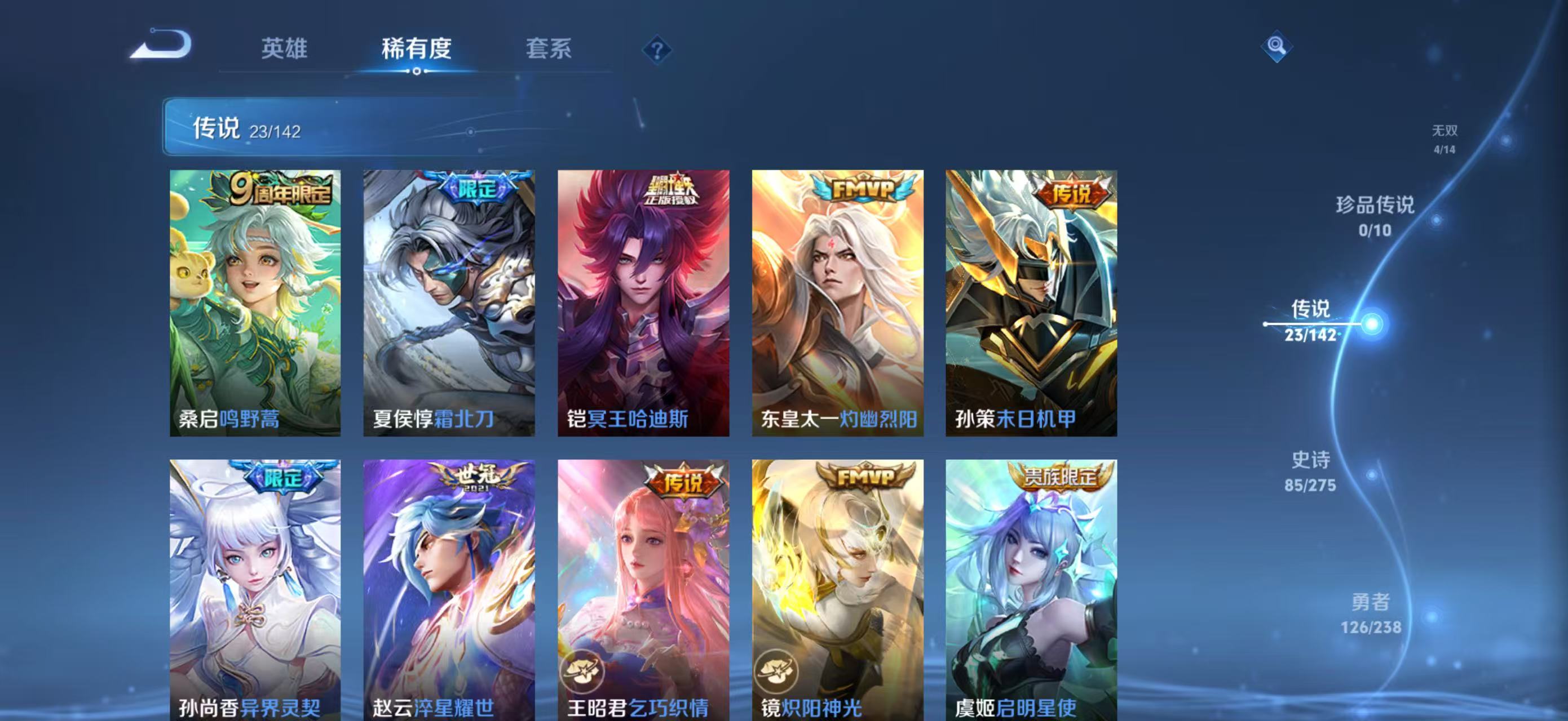 V9 皮肤300 英雄129 尊贵铂金 荣耀典藏2 无双皮肤4 星传说2 传说23